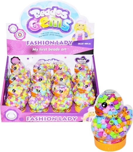 Ein unterhaltsames Set für kleine und große Kreative: bunte Perlen und Fäden zum Auffädeln mit Entchen-Motiv. Fördert Feinmotorik, Kreativität und Geduld. Bunte Perlen, Fäden im Set und einfaches Basteln für Einsteiger und Kinder (empfohlene Aufsicht durch Erwachsene).