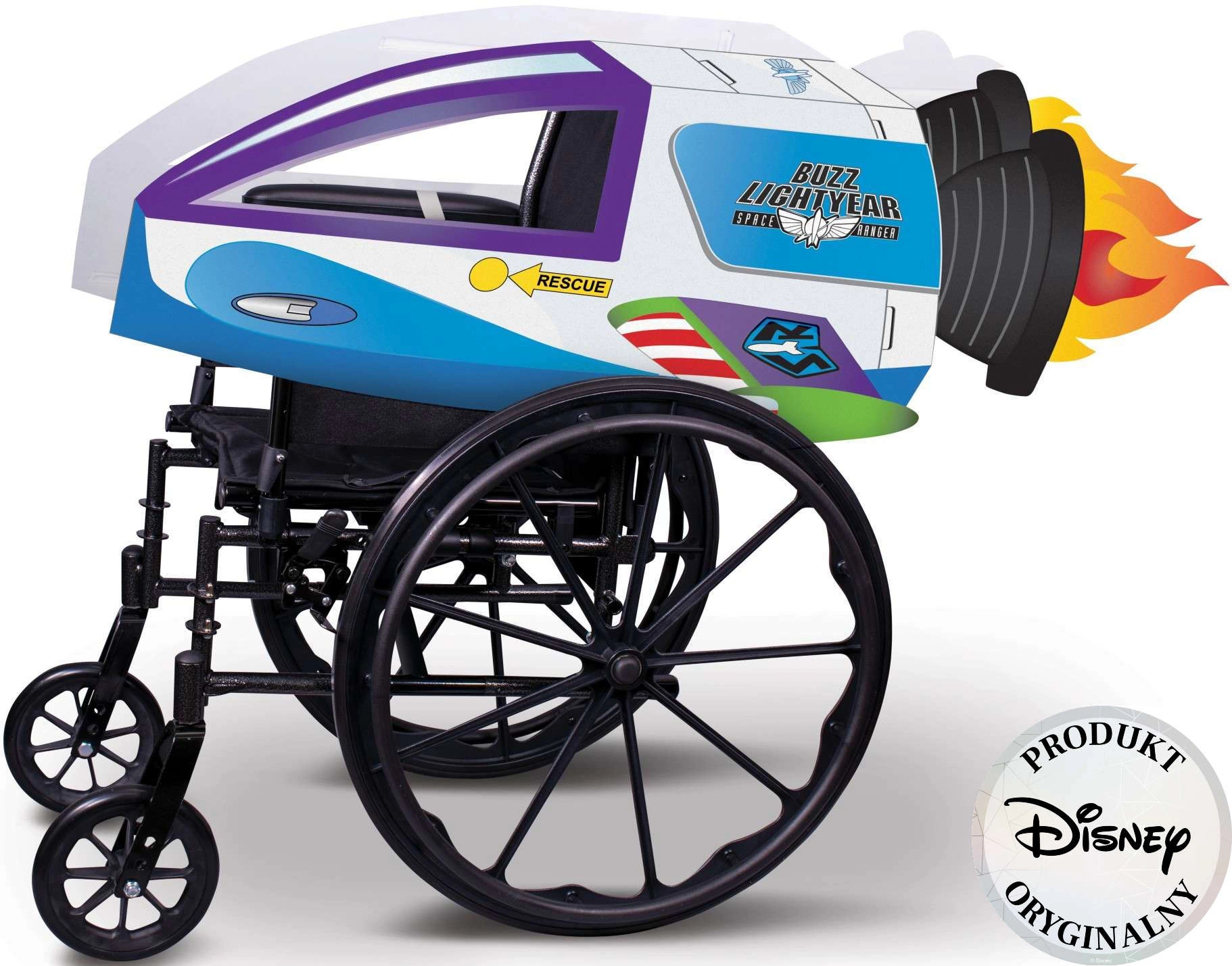 Auf zu unendlichen Weiten mit Buzz Lightyears Rakete! Dieser stylische Aufsatz für Kinderrollstühle macht jede Fahrt zum Abenteuer. Das Kostüm besteht aus robustem Filz, ist leicht, bequem und für nicht elektrische Rollstühle mit 24" (61 cm) Rädern konzipiert. Die offizielle DISNEY-Lizenz garantiert detailgetreues Design und hohe Qualität.