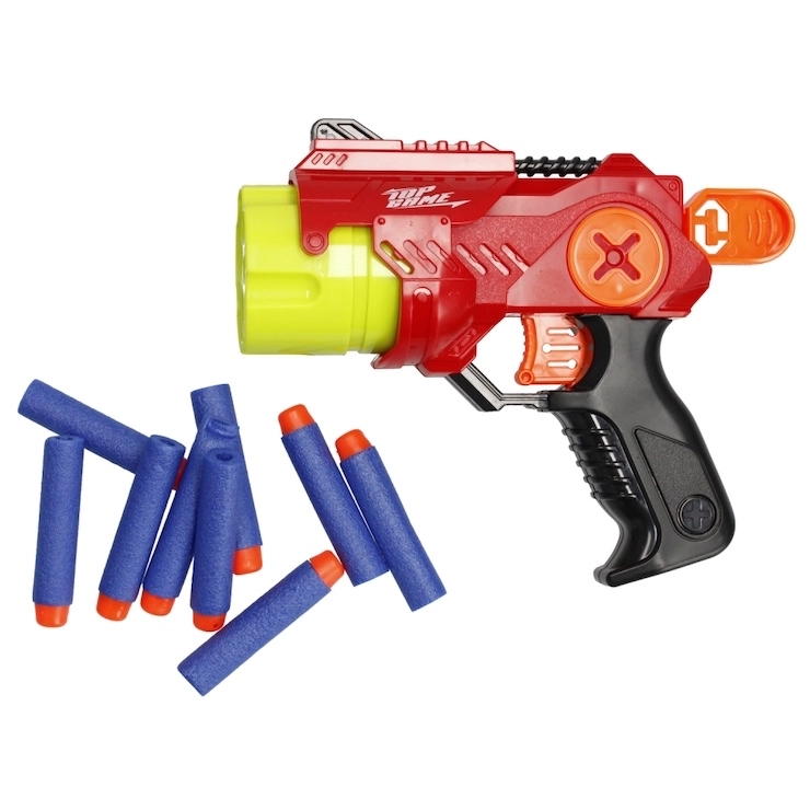 Der Lieferumfang umfasst eine Pistole und 9 Schaumstoffpfeile – das perfekte Starterset für Ziel- und Geschwindigkeitsspiele. Zur Auswahl stehen zwei attraktive Farben – rot und blau. Das Spielzeug ist für Kinder ab 8 Jahren geeignet und wird in einer Box mit Sichtfenster geliefert, ideal auch als Geschenk.