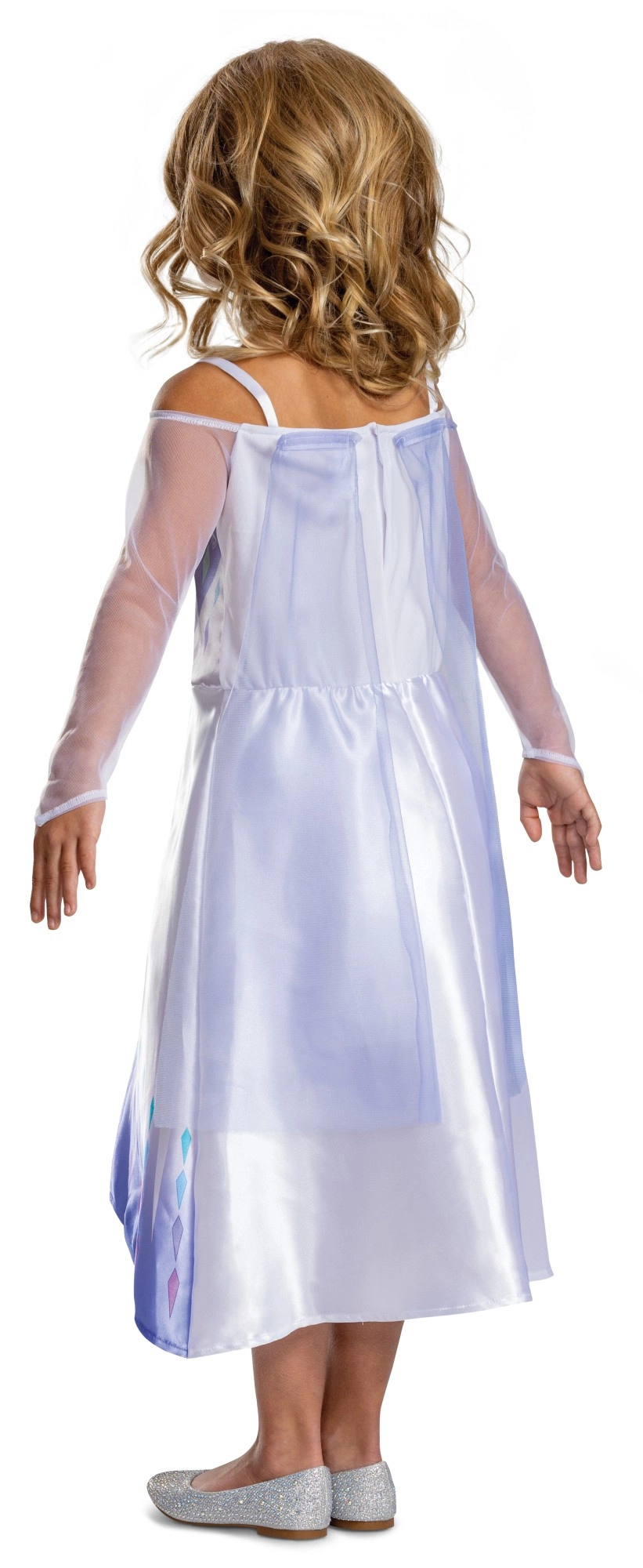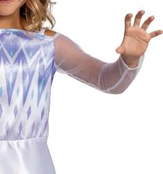 Das Oberteil ist mit geometrischen „eisigen“ Motiven und einem zarten Glitzer versehen, der dem Kostüm den authentischen Look der beliebten Figur aus Frozen verleiht.