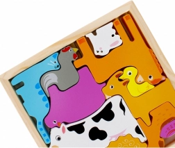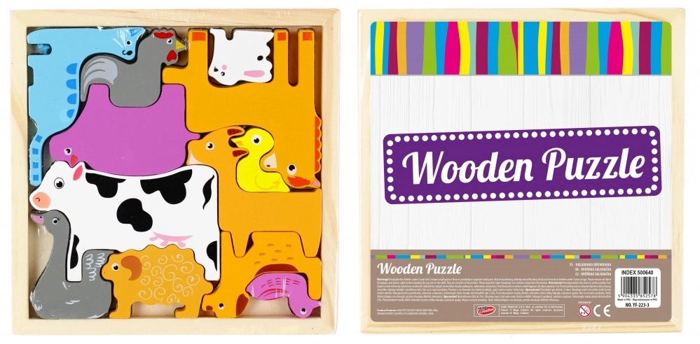 Entdecken Sie ein unterhaltsames Holzpuzzle mit Tiermotiven, das Kreativität, Feinmotorik und Formerkennung fördert. Dank der stabil verarbeiteten Holzteile und leuchtenden Farben ist es die ideale Wahl für Kinder ab 3 Jahren.