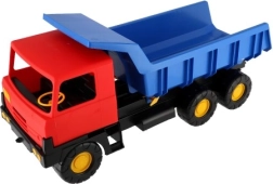 Die leuchtenden Farben – blaue Mulde und rote Kabine – fallen sofort ins Auge und fördern das Spiel zu Hause und im Freien. Das Fahrzeug verfügt über stabile Räder für eine gleichmäßige Fahrt auf verschiedenen Untergründen und bietet mit seiner Länge von 75 cm viel Raum für fantasievolles Spiel.