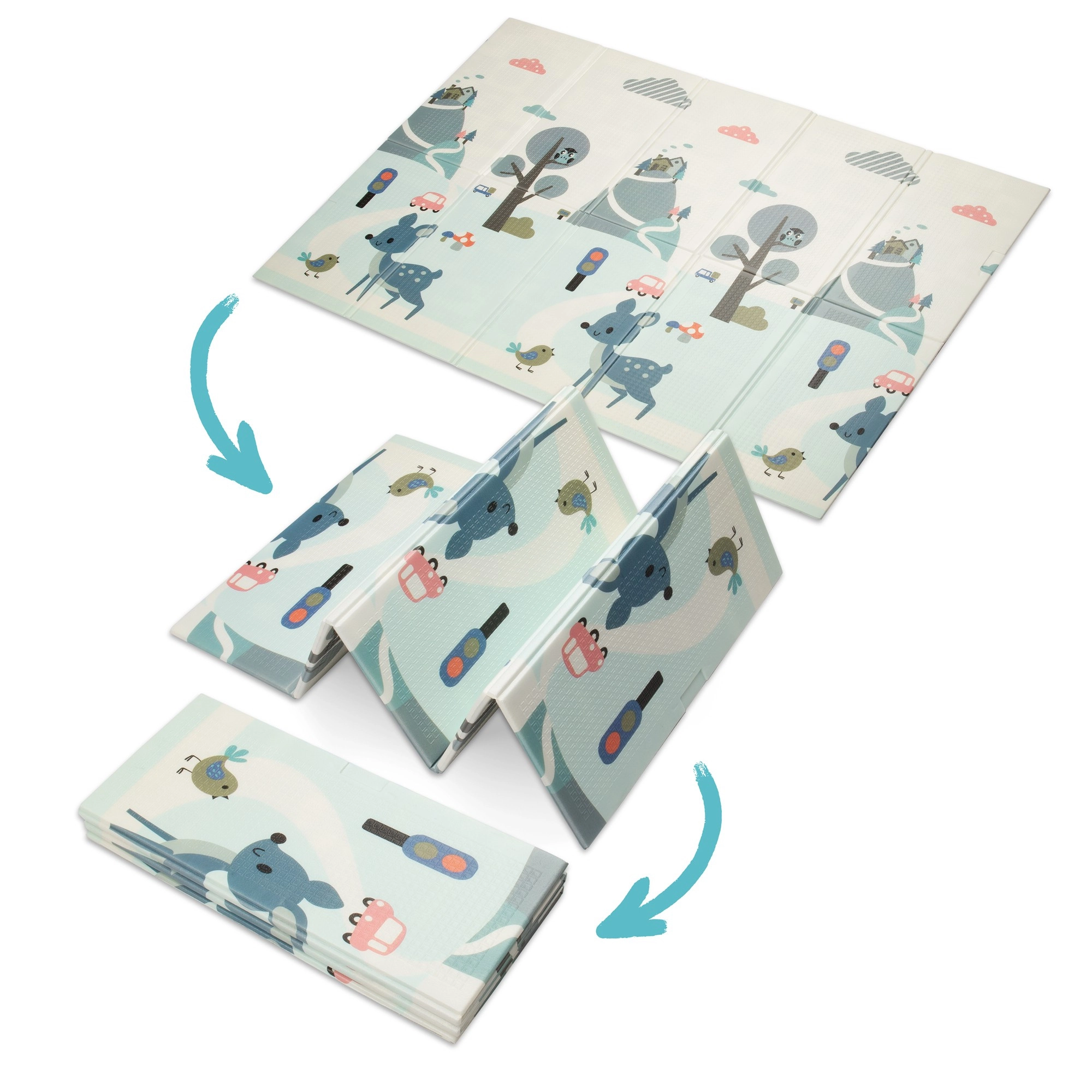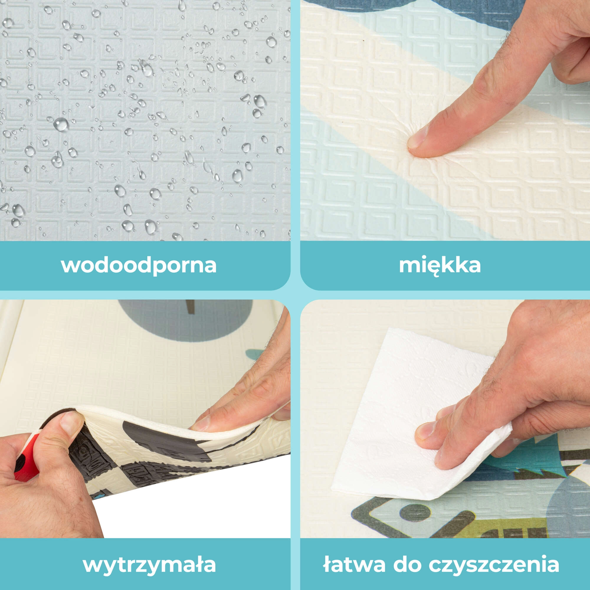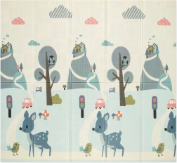 Der Premium-XPE-Schaum sorgt für hervorragende Stoßdämpfung, Wärmeisolierung gegen kalte Böden und eine lange Lebensdauer. Beide Seiten der Matte haben unterschiedliche, lehrreiche Drucke – der sanfte „Waldweg“ mit niedlichen Tieren und kontrastreiche Motive zur visuellen Stimulation der Kleinsten. Dank der rutschhemmenden Struktur ist sie ideal für sicheres Spielen, Bauchzeit sowie zum Lernen von Krabbeln und Laufen.