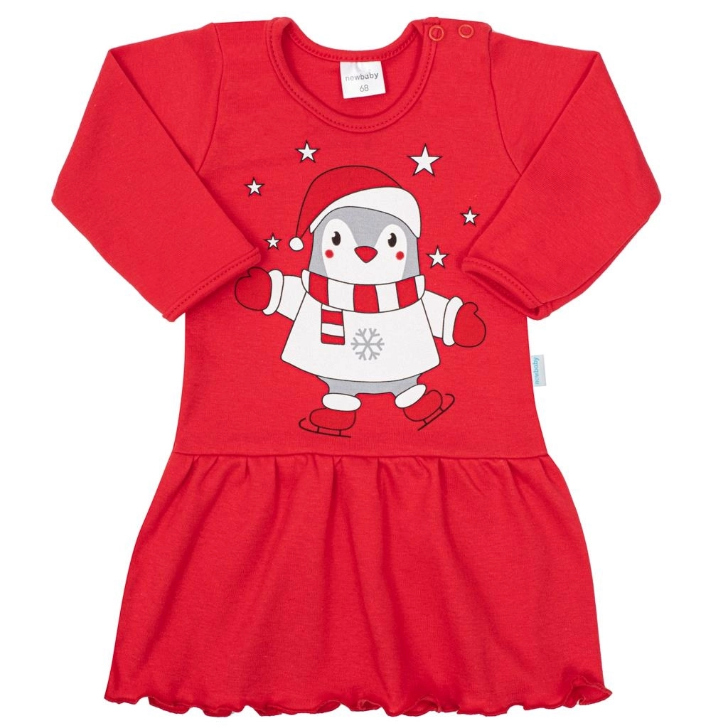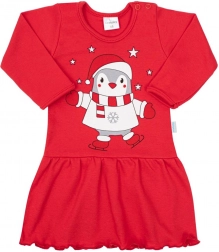 Niedliches Kinderkleid mit Stirnband NEW BABY Winter Penguin – ein Hingucker für kleine Fashionistas. Es besteht aus angenehmer 100 % Baumwolle, hat lange Ärmel, ein praktisches Druckknopf-Verschluss am Schulterriemen und wird von einem fröhlichen Pinguin-Motiv in schönem Rot geziert. Enthalten ist ein elastisches Stirnband, das sich wunderbar an das Köpfchen anpasst.