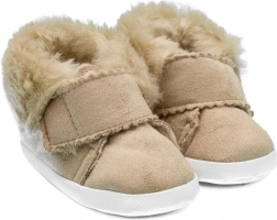 Niedliche Winter-Babyschuhe NEW BABY halten kleine Füßchen warm und bequem. Sie haben ein weiches Obermaterial aus Eco-Wildleder, eine wärmende Fleece-Fütterung und einen praktischen Klettverschluss. Dank des breiten Innenraums können sich die Zehen frei bewegen, zudem sind sie sehr leicht und mit einer dünnen, rutschhemmenden Sohle für sicheren Kontakt mit dem Untergrund ausgestattet. Ideal für den Kinderwagen und gemütliche Stunden zu Hause.
