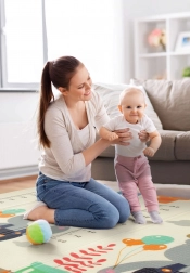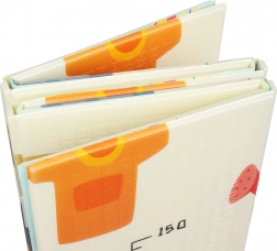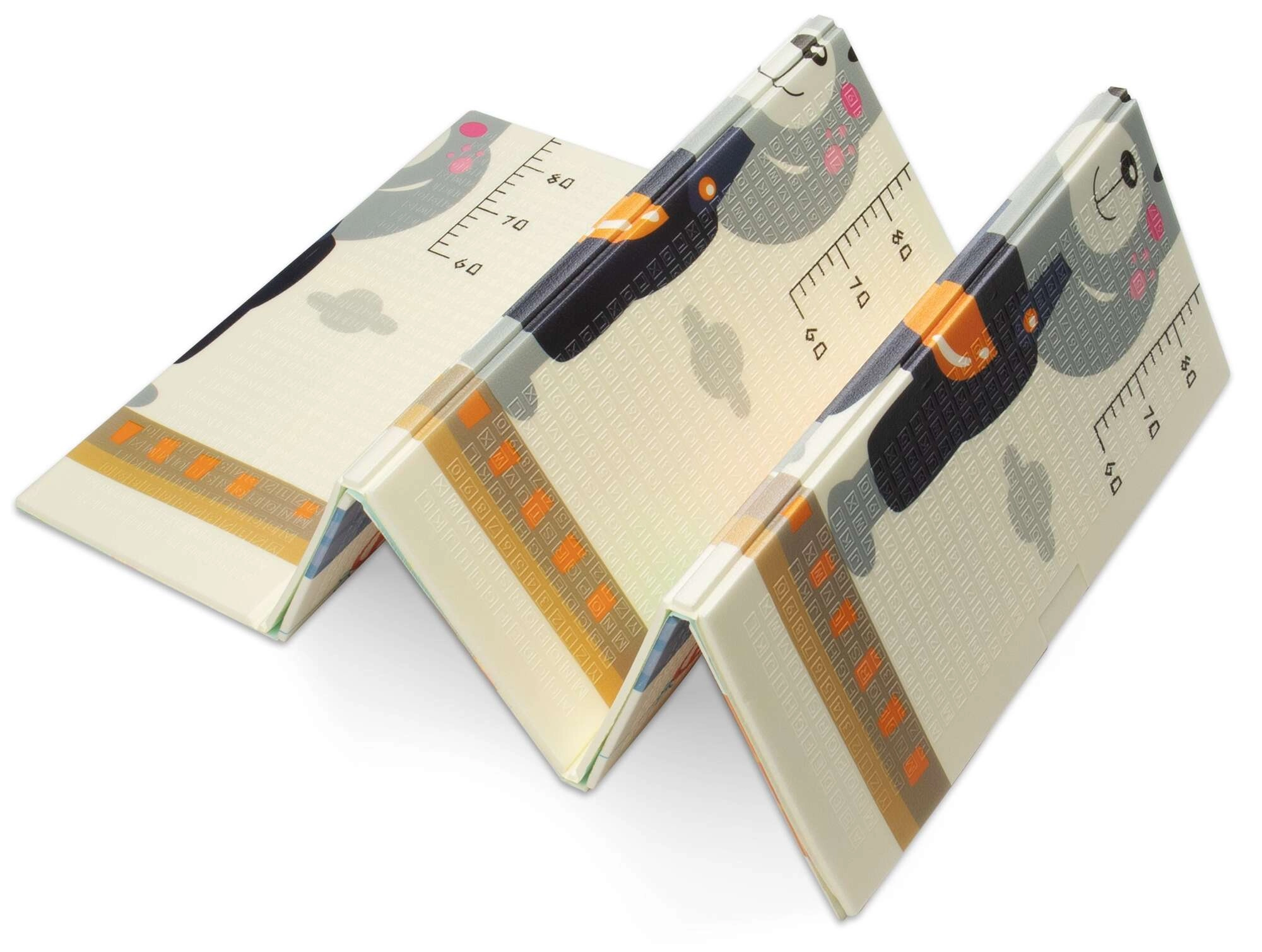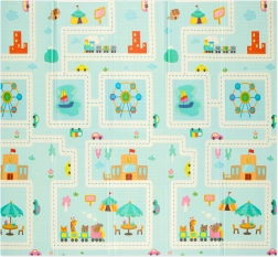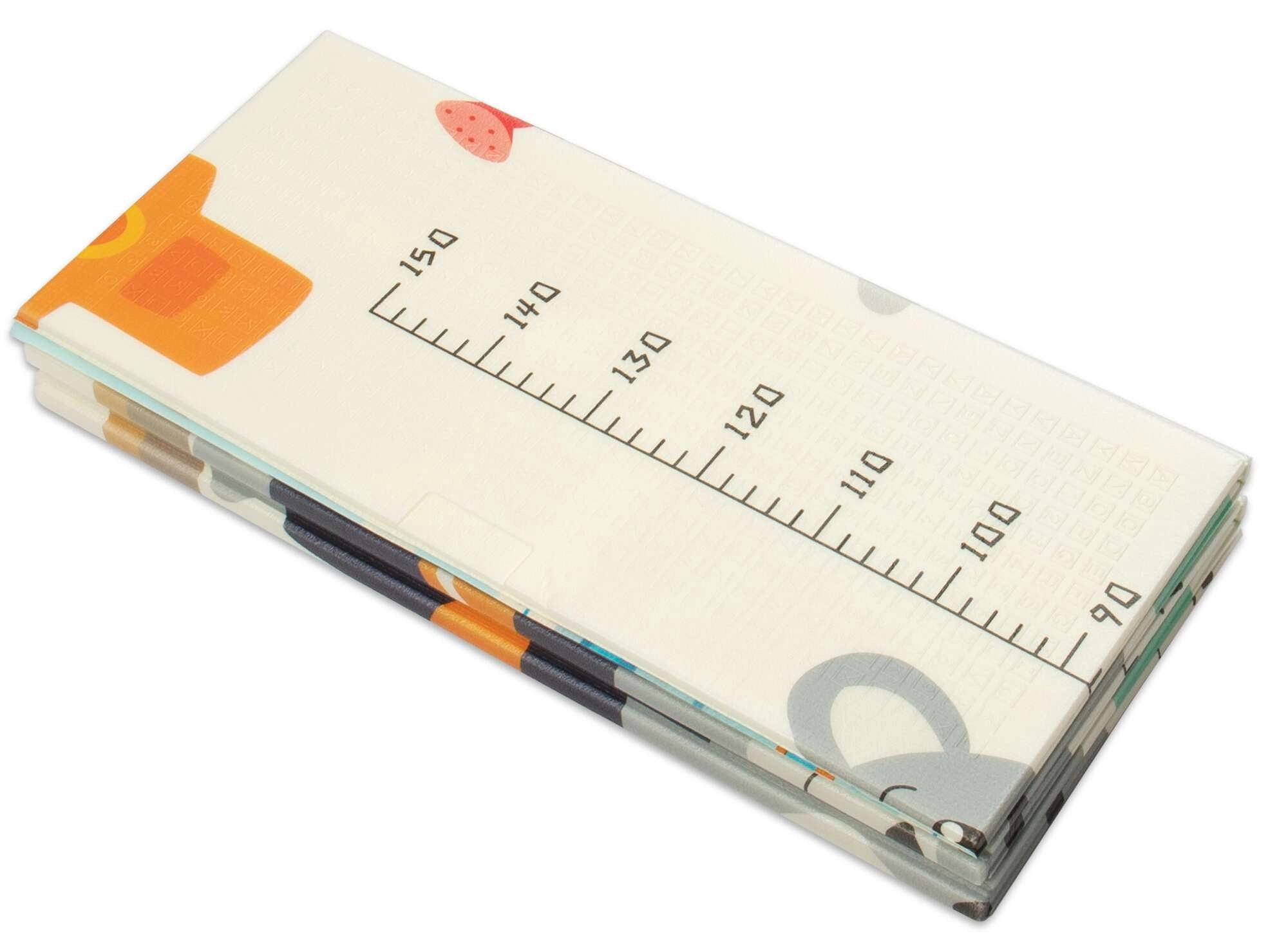Eine Seite mit niedlichen Tieren und Skala zum Verfolgen des Wachstums, die andere mit Straßen und Autos zur Förderung der Fantasie beim Spielen.
