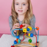 Das Kinderlabyrinth mit Marienkäfer von Bino ist ein ideales erstes Motorikspielzeug. Bunte Perlen in Form von Tieren und Blumen bewegen sich auf Metalldrähten über einer Holzbasis, was Geduld und Konzentration fördert und spielerisch die Fähigkeiten von Kleinkindern entwickelt.