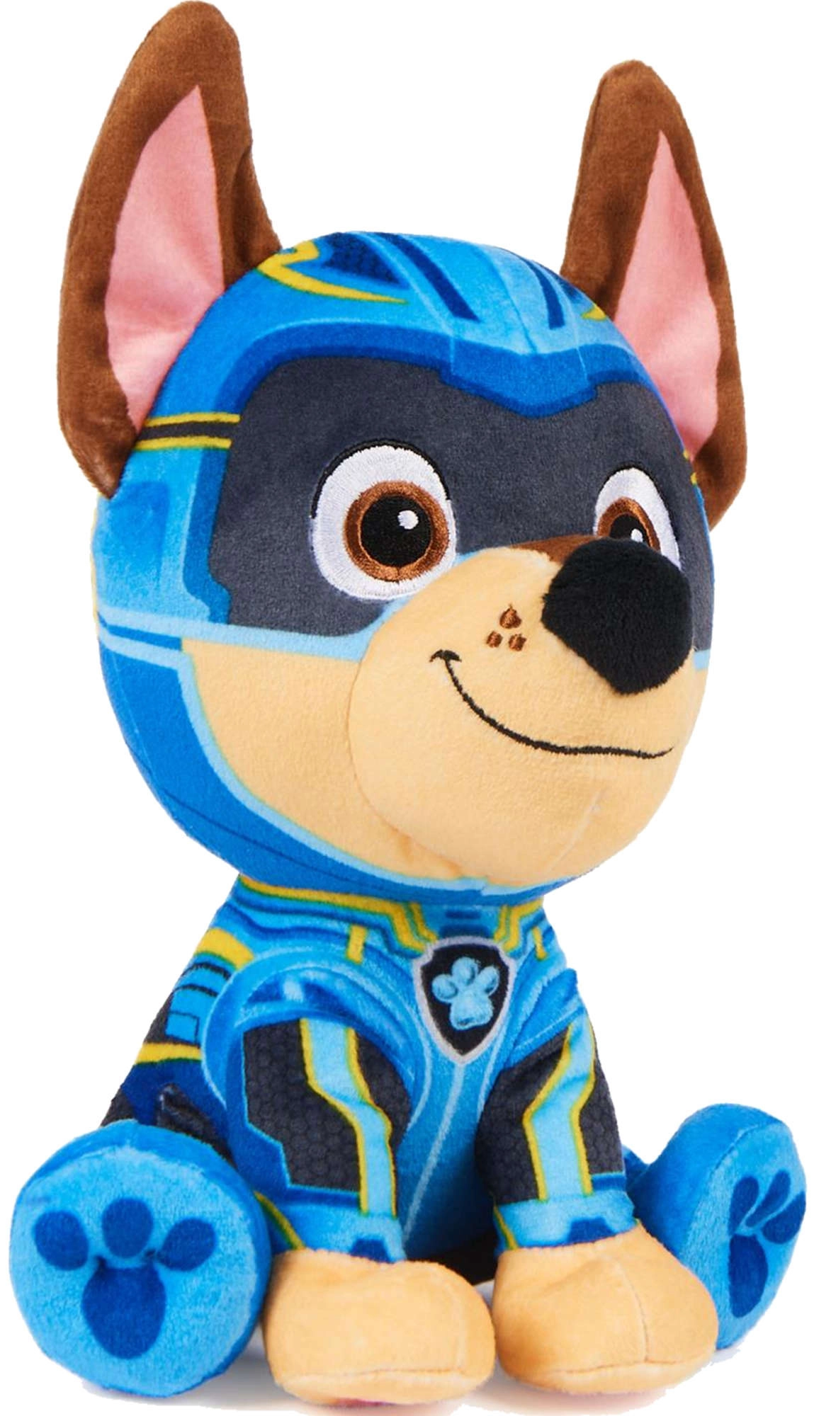 Der Plüsch-Chase stellt den mutigen Deutschen Schäferhund dar – den Polizeihund aus der beliebten Serie PAW PATROL, diesmal als Superheld aus dem Film Mighty Movie. Dank der hochwertigen Verarbeitung sowie gestickter Augen und Pfoten wirkt er sicher und robust selbst bei täglichem Spiel.