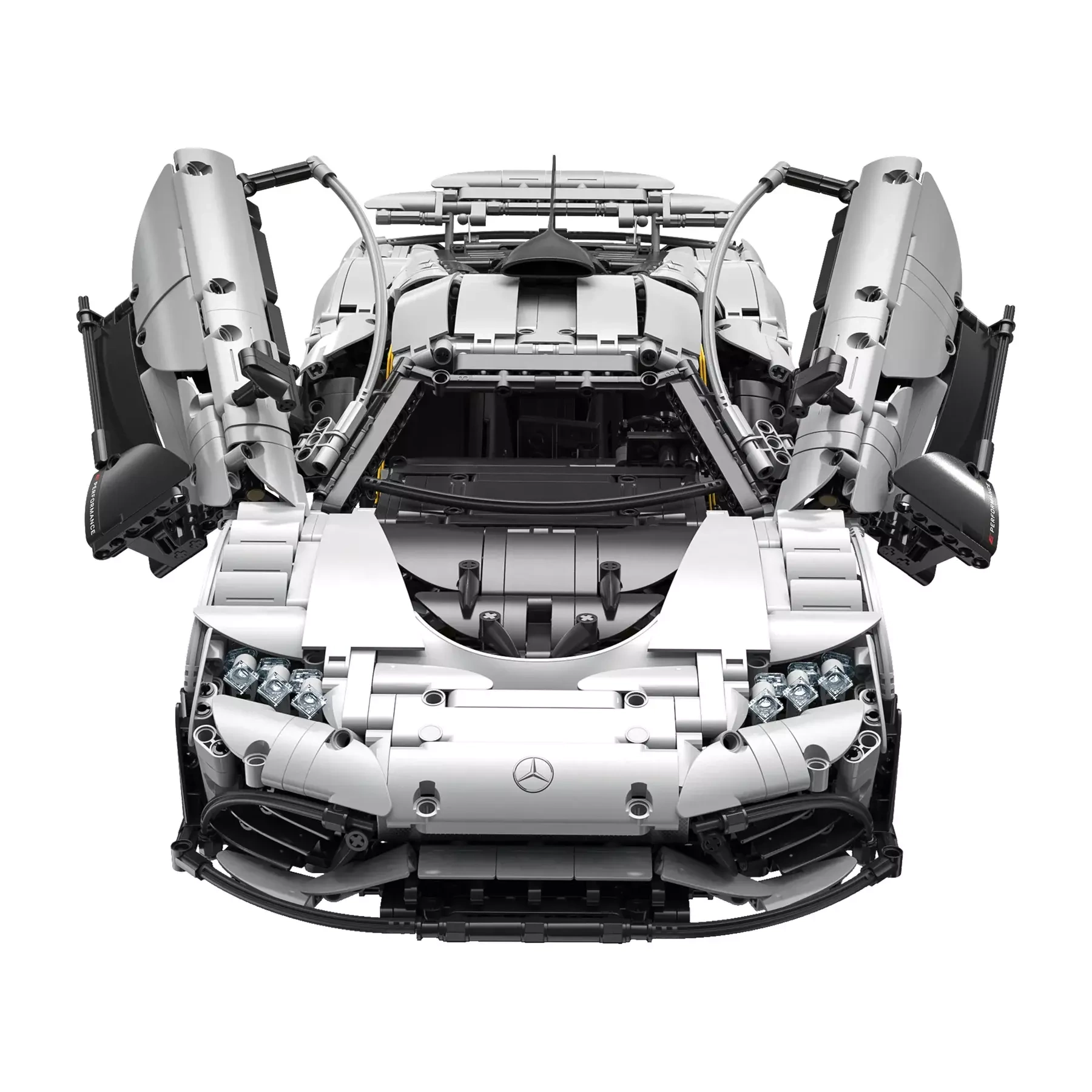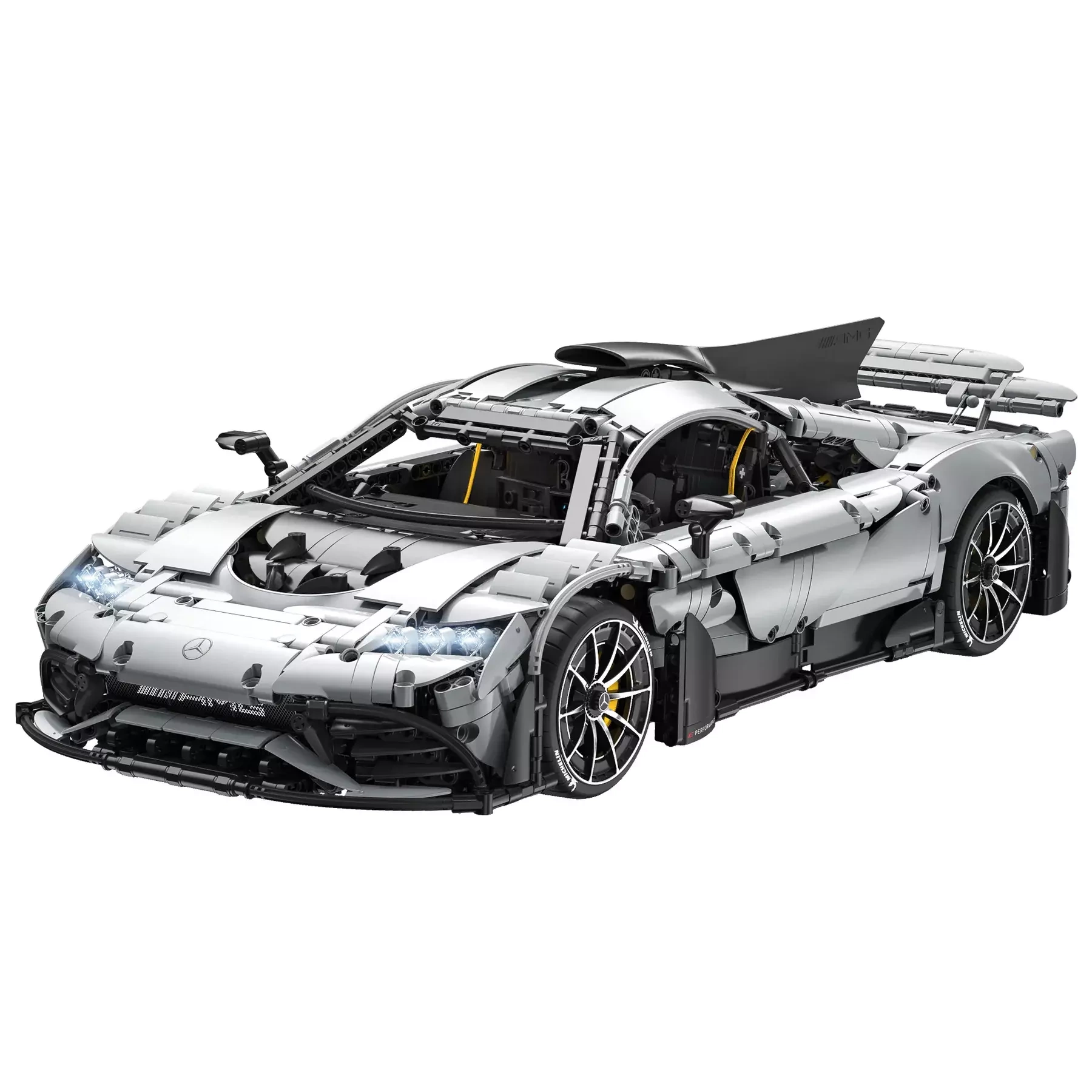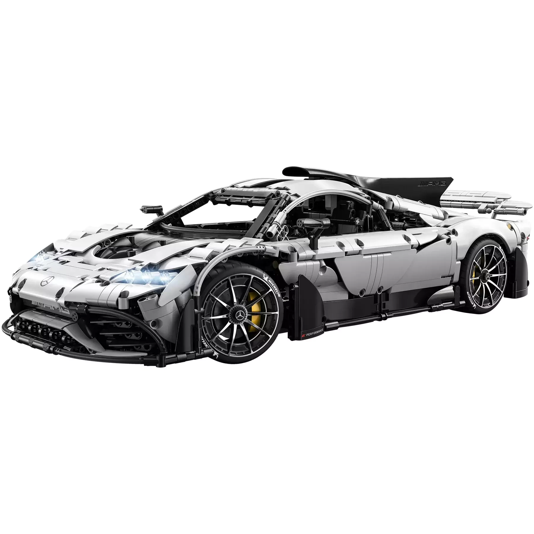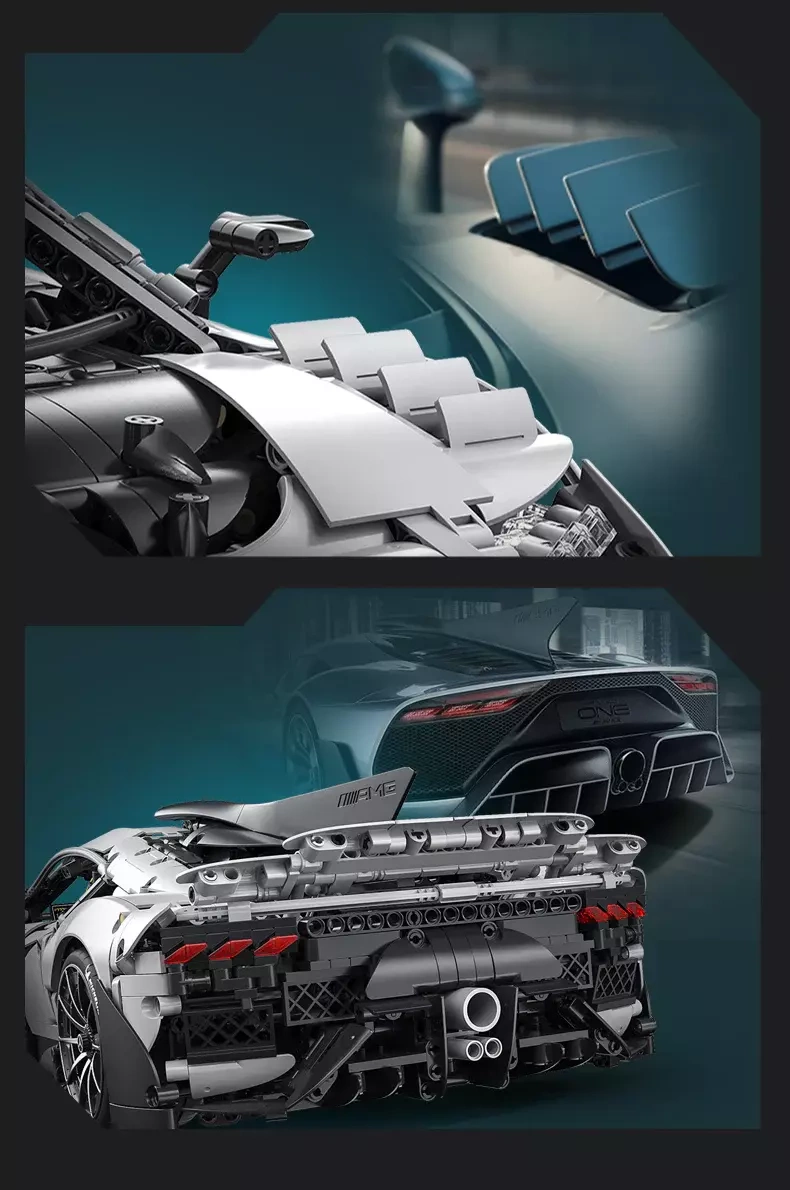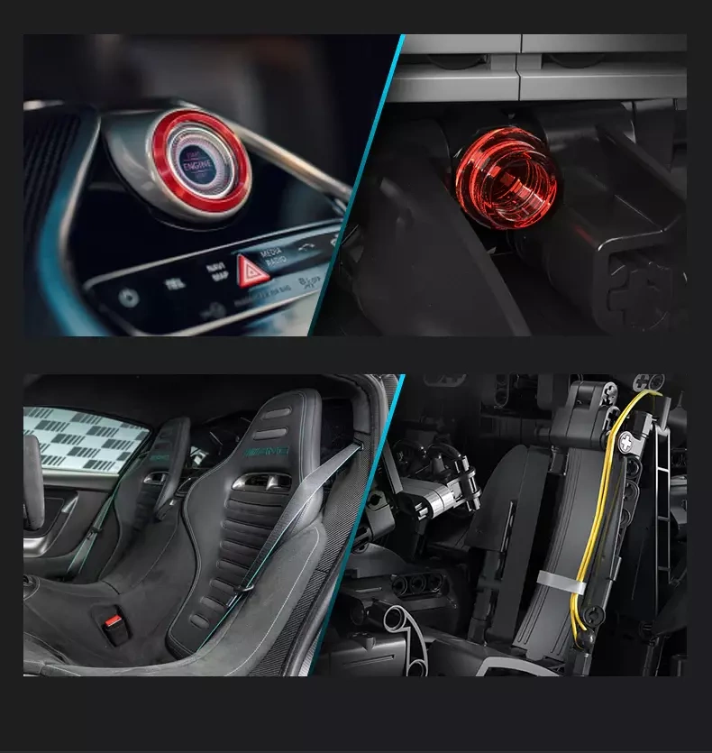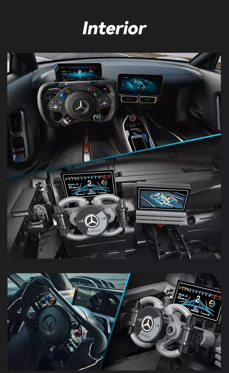 Elektrisch betätigte Scherentüren und Haube, ein bewegliches F1‑Style‑Lenkrad, ein funktionierender hinterer V6 sowie Einzelradaufhängung an allen Rädern für ein authentisches Erlebnis.
