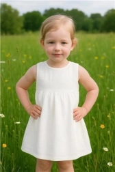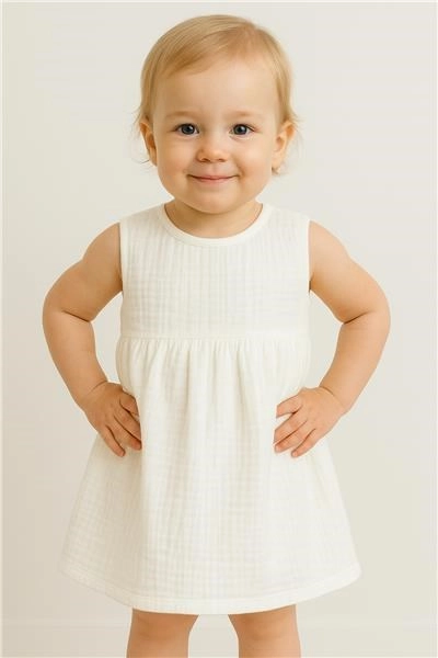 Entdecken Sie den Zauber des sommerlichen Musselinkleids New Baby Elizabeth, das durch Leichtigkeit, Atmungsaktivität und maximalen Tragekomfort für Ihr Baby überzeugt. Der ärmellose A-Linien-Schnitt bietet Bewegungsfreiheit, während der sanft geraffte Rock dem Kleid einen charmanten Look verleiht. Ideal für warme Tage, Familienfeiern und den Alltag.