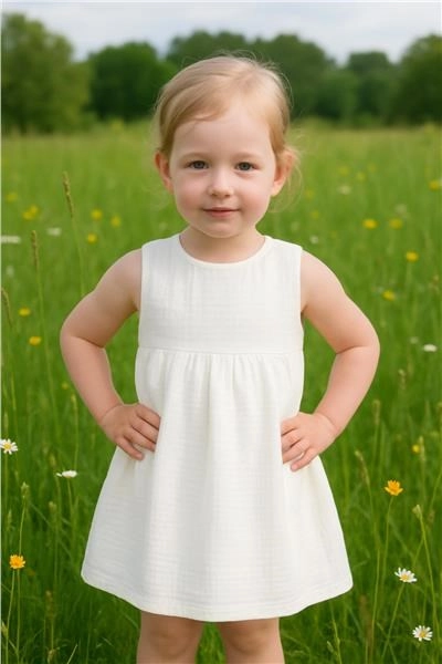 Das Kleid New Baby Elizabeth ist für maximalen Komfort und Stil an warmen Tagen konzipiert. Musselin gehört zu den weichsten und atmungsaktivsten Stoffen – er lässt die Haut hervorragend atmen, verringert das Risiko einer Überhitzung und fühlt sich außergewöhnlich angenehm an. Dank des A-Linien-Schnitts schwingt das Kleid schön mit und schränkt die Bewegung nicht ein.