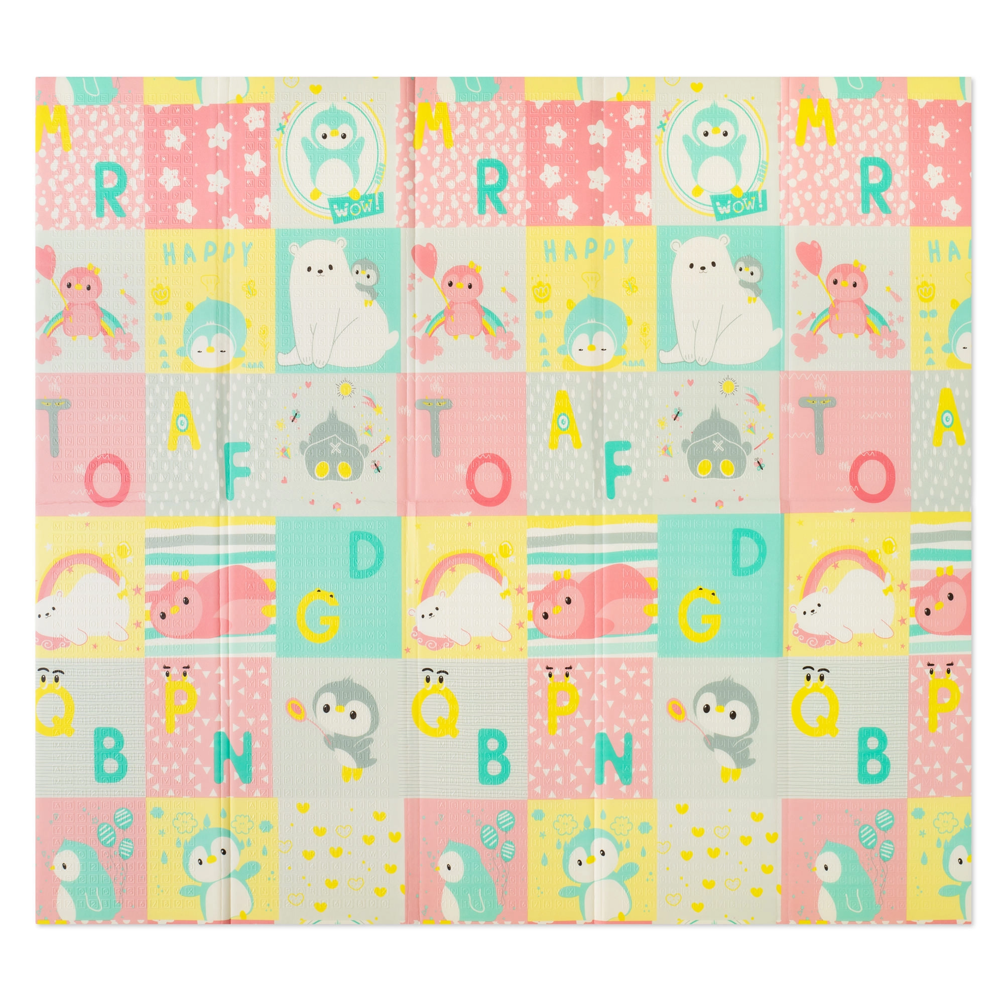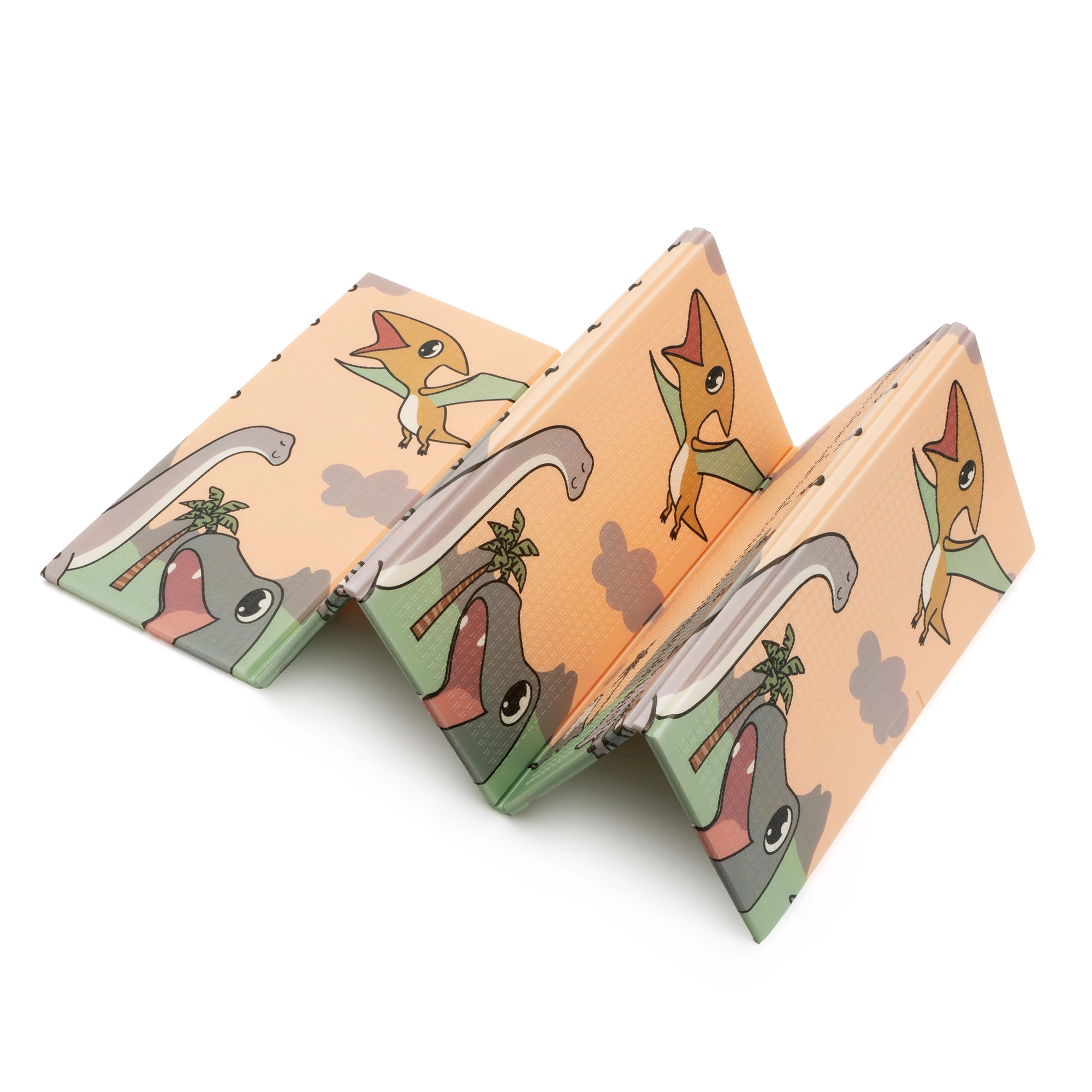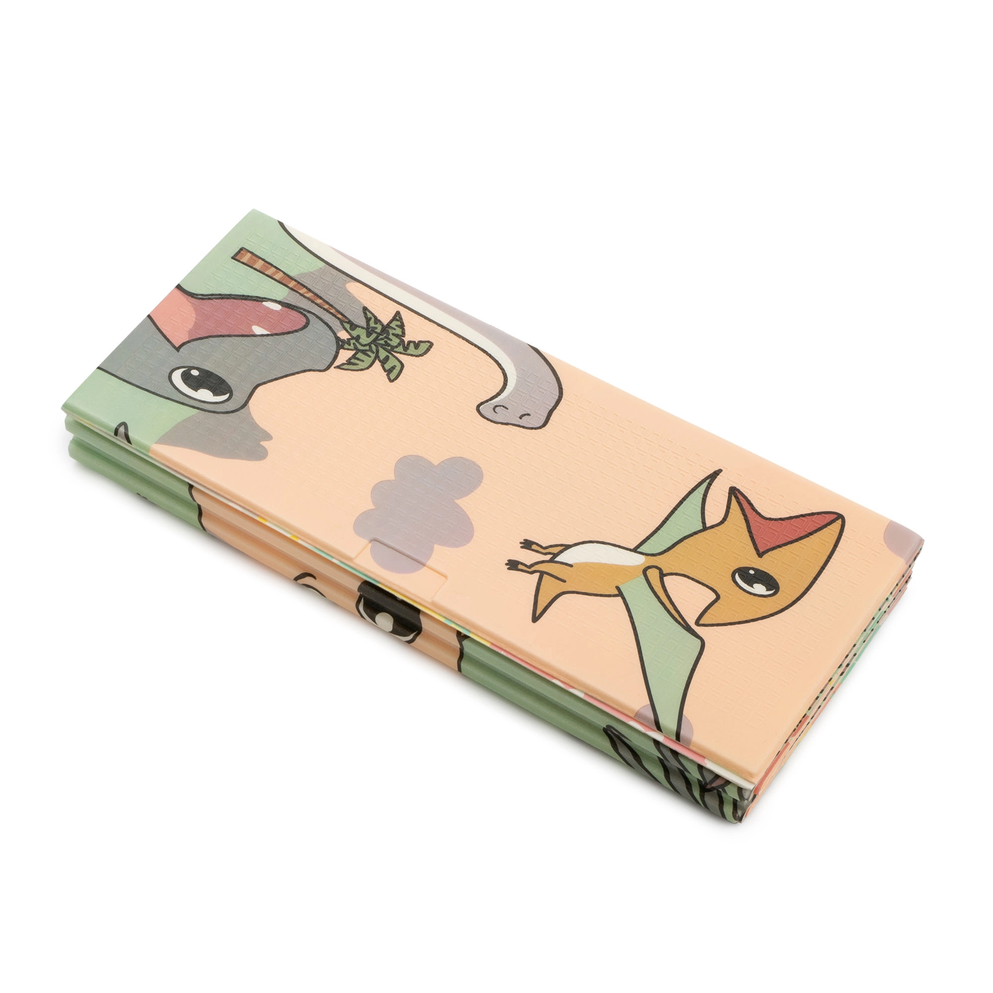 Beide Seiten bieten einen pädagogischen Druck in sanften Pastellfarben: niedliche Dinosaurier mit Höhenmessskala sowie ein Motiv mit Tieren und Buchstaben. Die rutschfeste Prägung unterstützt das sichere Erlernen von Krabbeln und Laufen und fördert gleichzeitig die sensorische Entwicklung. Die Oberfläche ist wasserabweisend und lässt sich einfach mit einem feuchten Tuch abwischen.