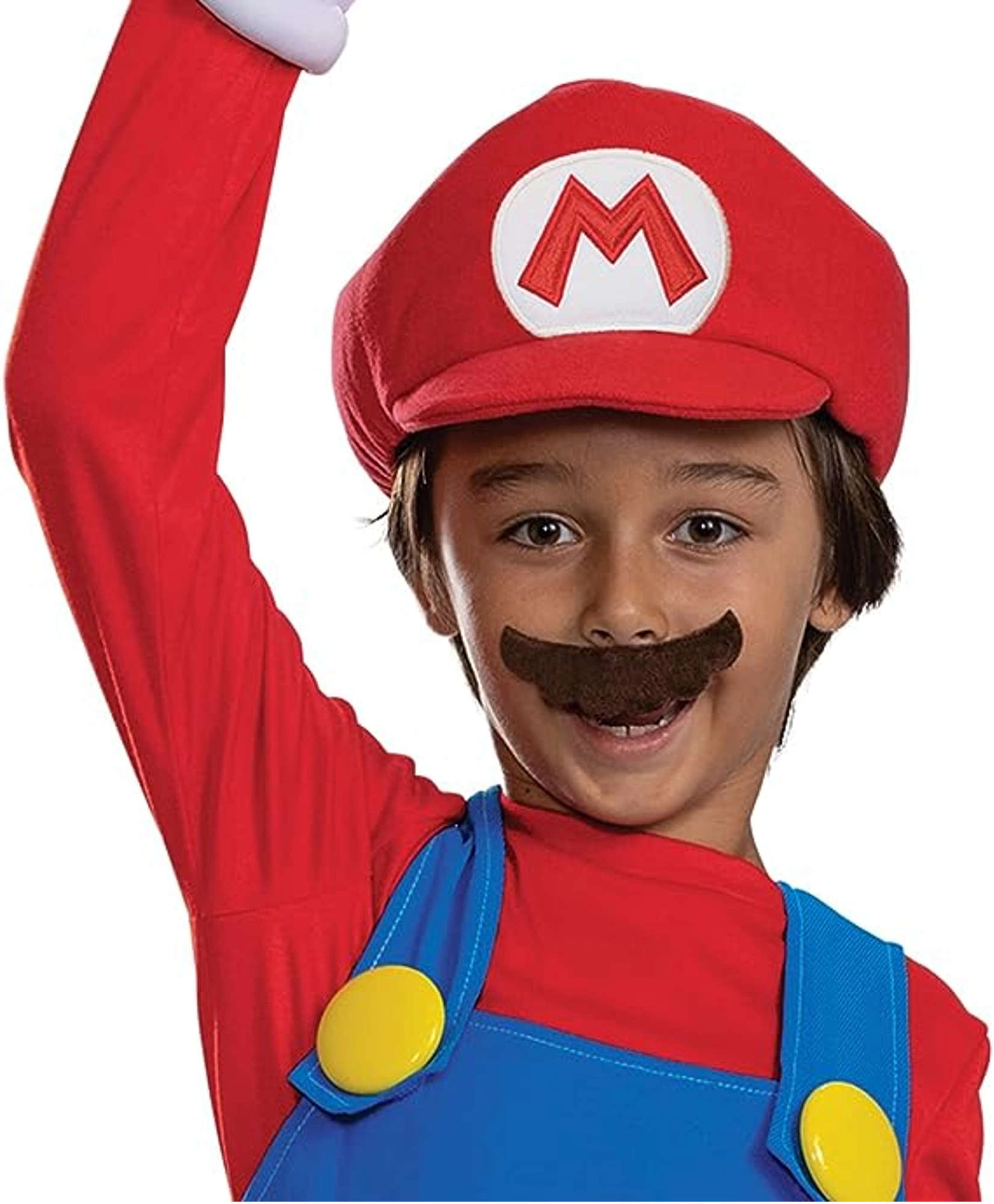 Enthalten sind eine rote Mütze mit Emblem, der charakteristische Overall und ein falscher Schnurrbart – alles für die perfekte Verwandlung in die Welt von Super Mario.