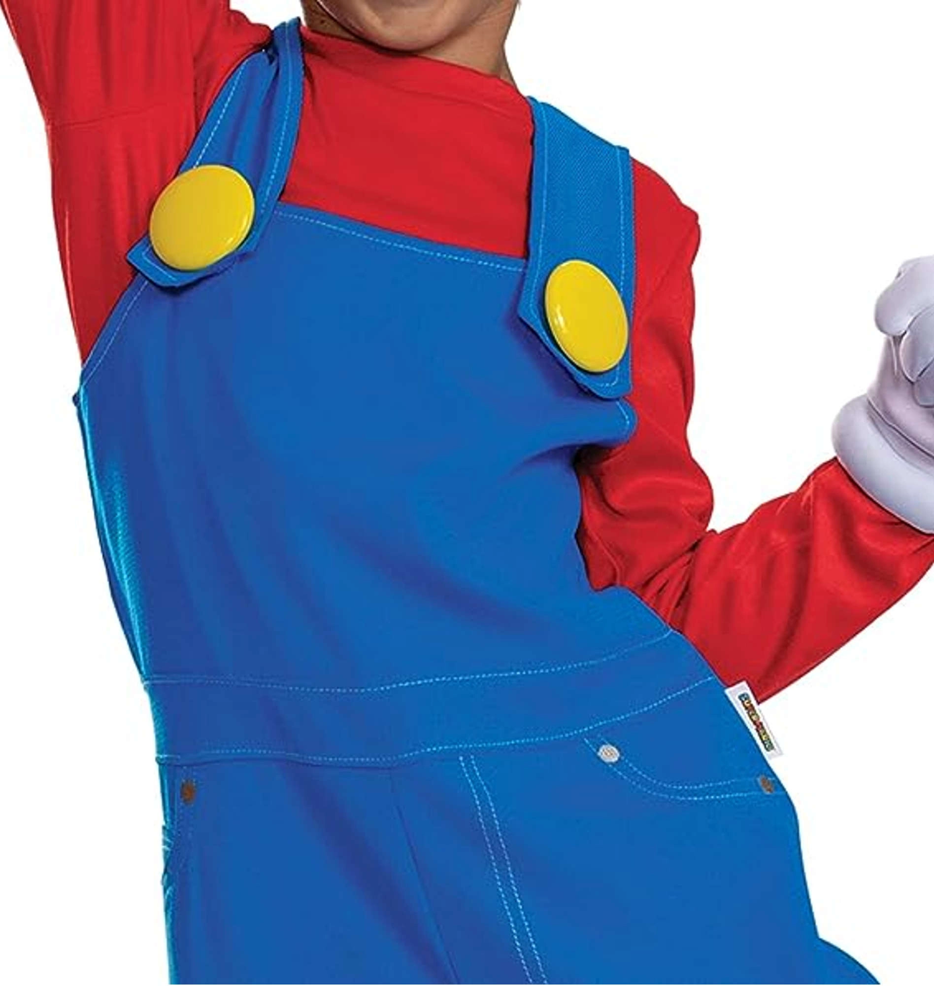 Im Lieferumfang ist alles enthalten, was Kinder für die perfekte Verkleidung brauchen: ein rot-blauer Overall mit gelben Knöpfen, eine Mütze und ein aufklebbarer Schnurrbart. Das Material aus 100% Polyester ist leicht, angenehm und sowohl für drinnen als auch für draußen geeignet.