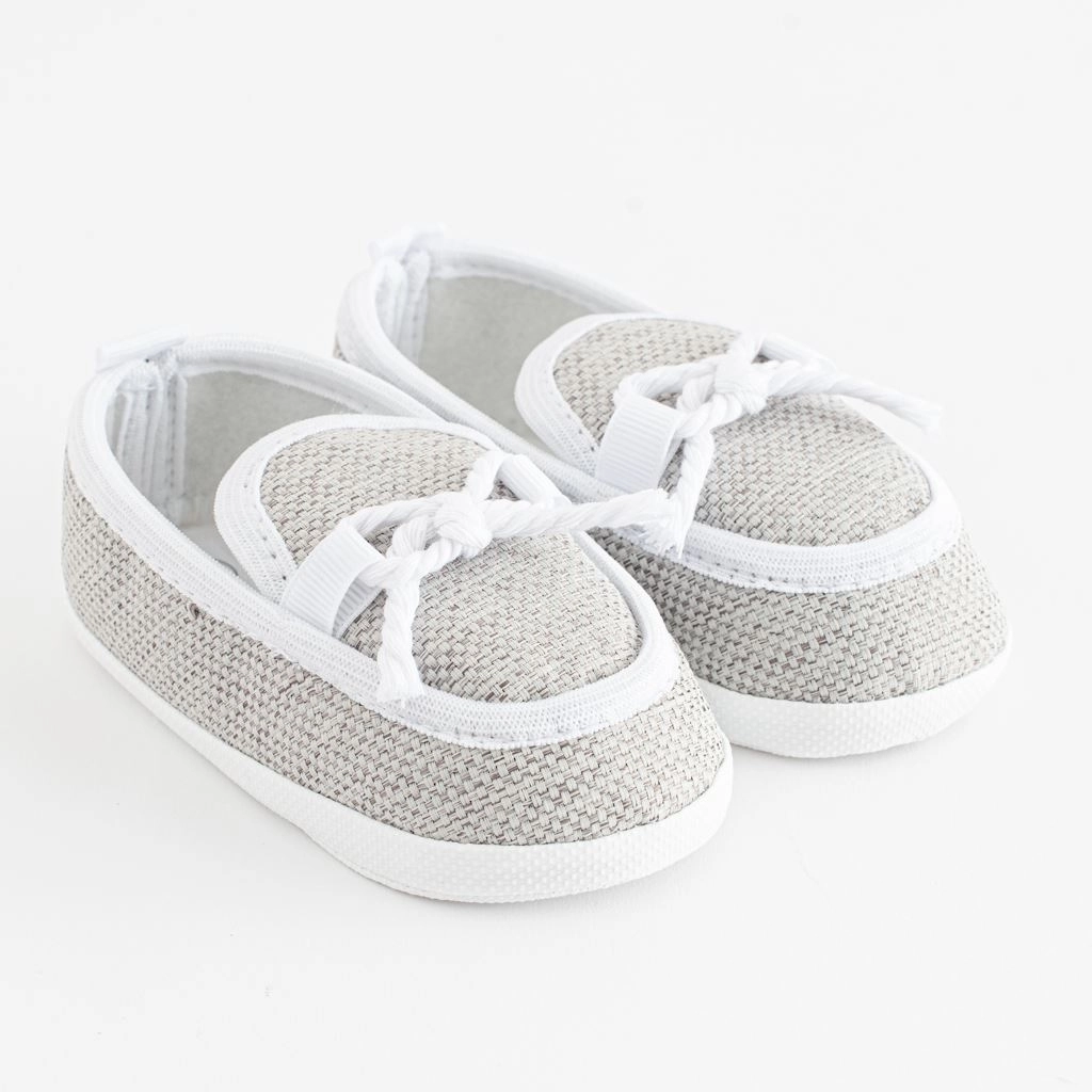 Diese eleganten Krabbelschuhe im Mokassin-Stil der Marke New Baby überzeugen durch ein modernes Design und eine praktische Ausführung. Dank der anliegenden Passform sitzen sie gut am Fuß, und der breite Innenraum ermöglicht die natürliche Entwicklung von Zehen und Muskulatur. Die weiche und dünne PVC-Laufsohle ohne BPA ist ideal zum Krabbeln, Sitzen und für erste Stehversuche, jedoch nicht zum Gehen.