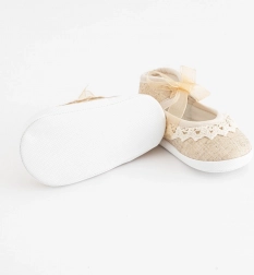 Die Schühchen bestehen aus zarter Spitze (100% Polyester) und haben eine dünne synthetische Sohle aus BPA-freiem PVC. Dank des sehr geringen Gewichts tragen sie sich für das Baby angenehm – zu Hause wie auch zu festlichen Anlässen. Lieferung in einer praktischen Geschenkbox.