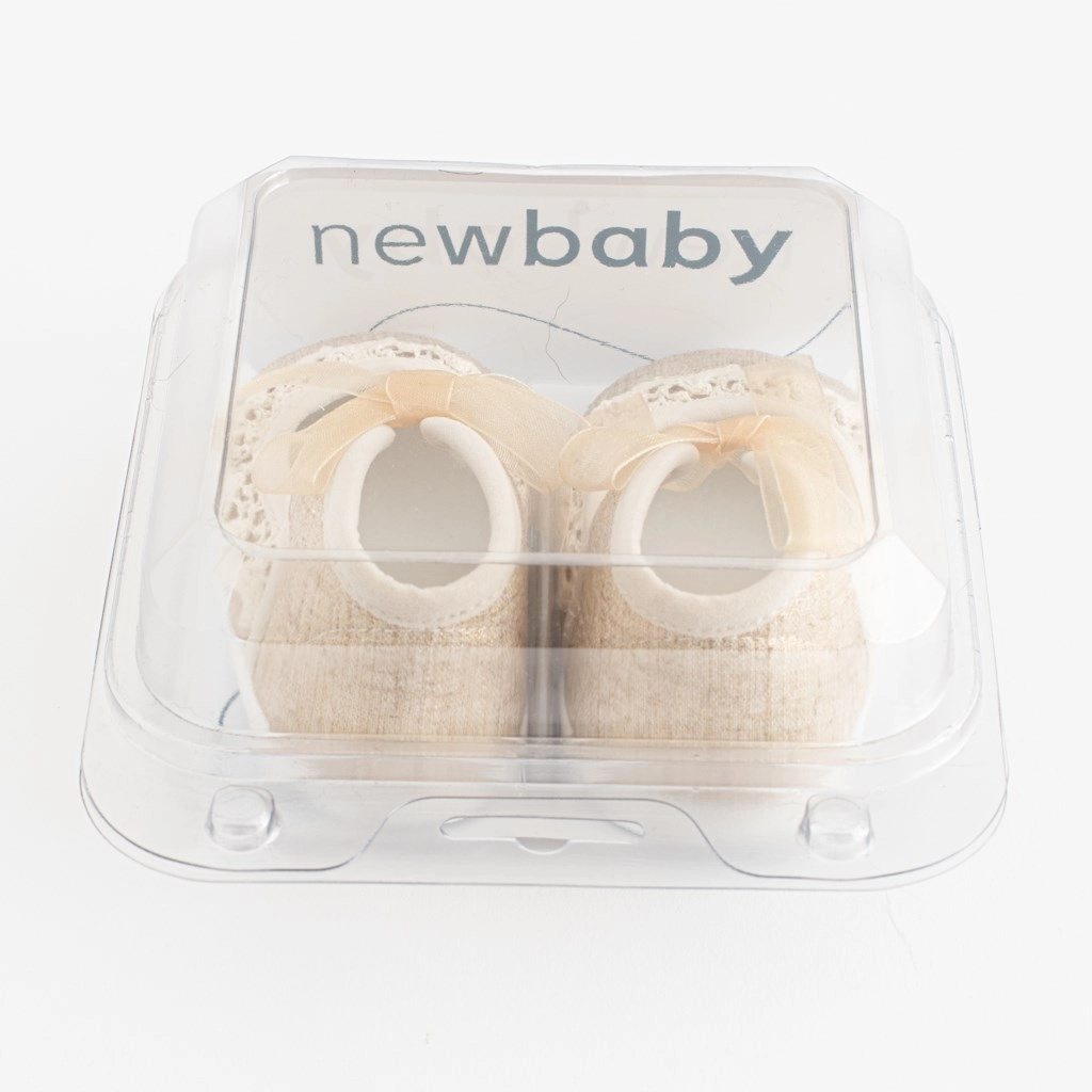 Niedliche Babyschühchen von New Baby im Spitzen-Design erfreuen jede kleine Prinzessin. Sie sind federleicht, bequem und sitzen dank Schnürung gut am Füßchen. Breite Innenform ermöglicht freie Zehenbewegung, die dünne flexible Sohle aus BPA-freiem PVC ist ideal für Babys, die noch nicht laufen. Innensohlenlänge 11 cm, geeignet für 3–6 Monate, geliefert in einer praktischen Schachtel.