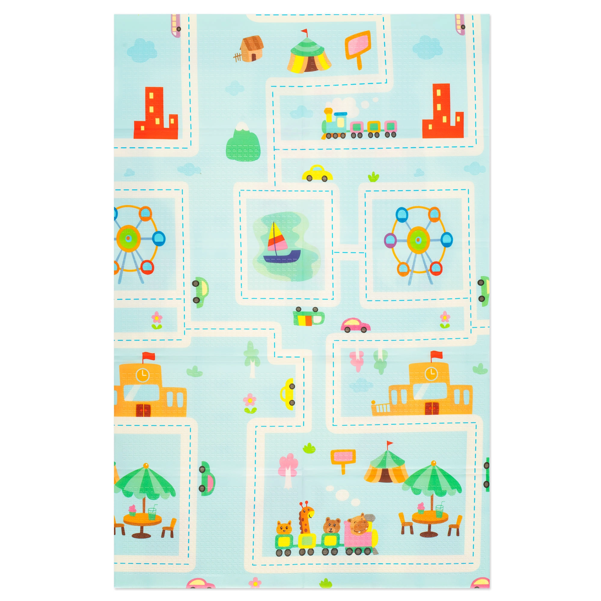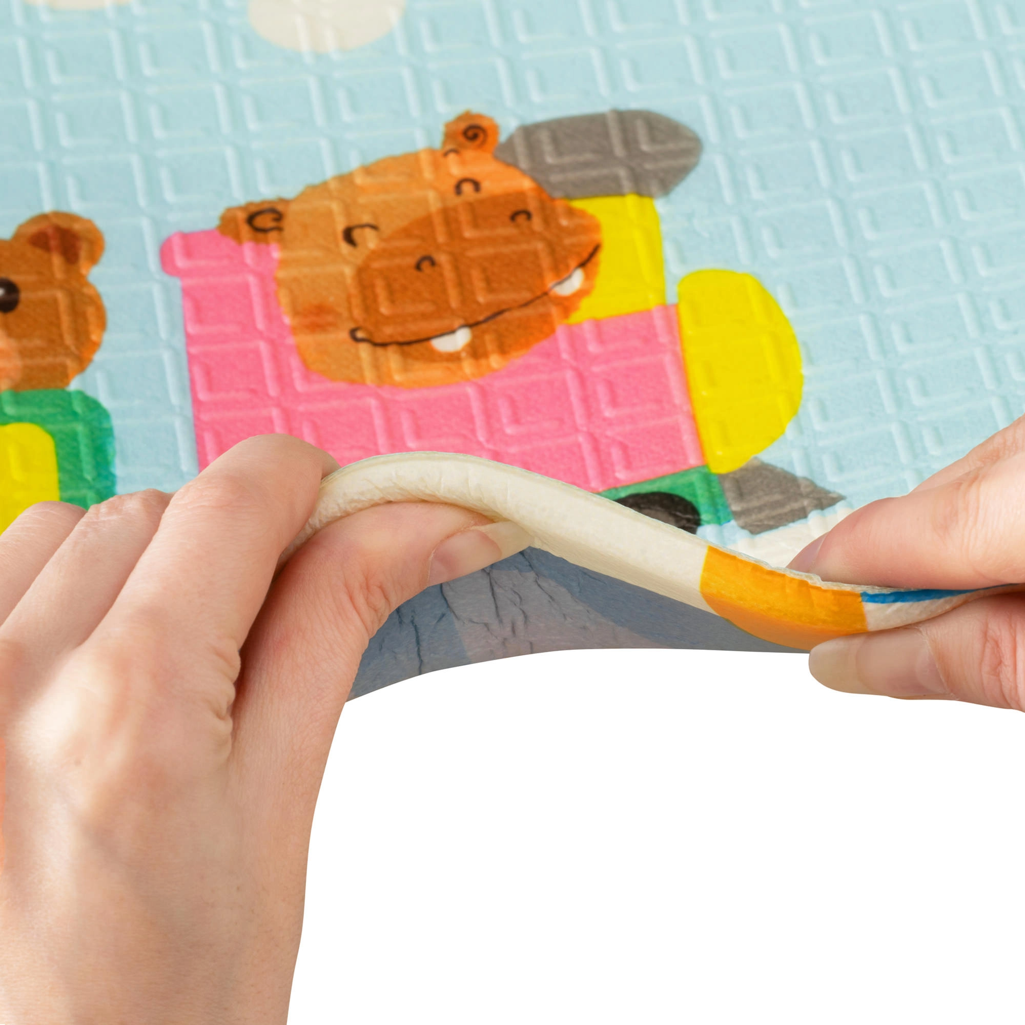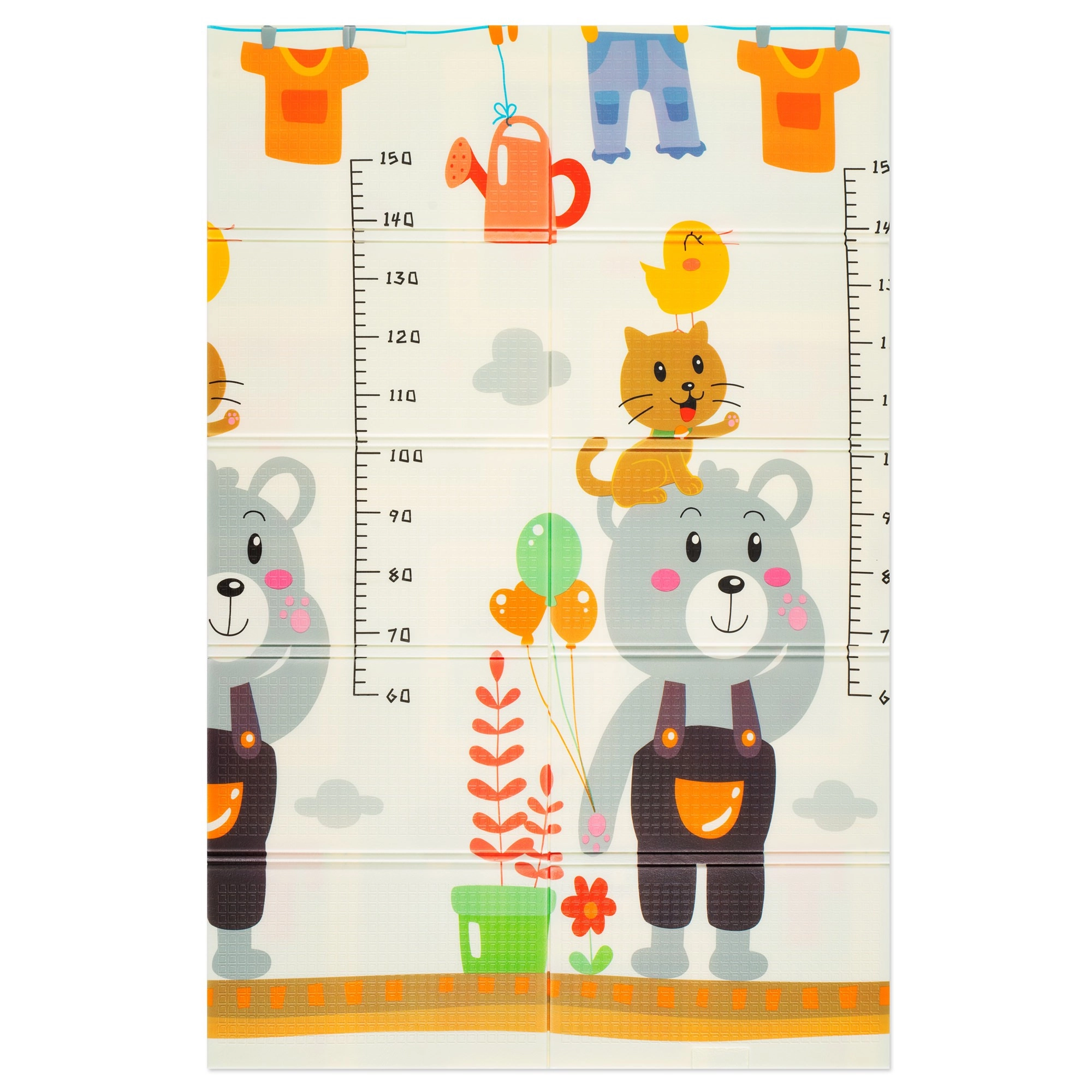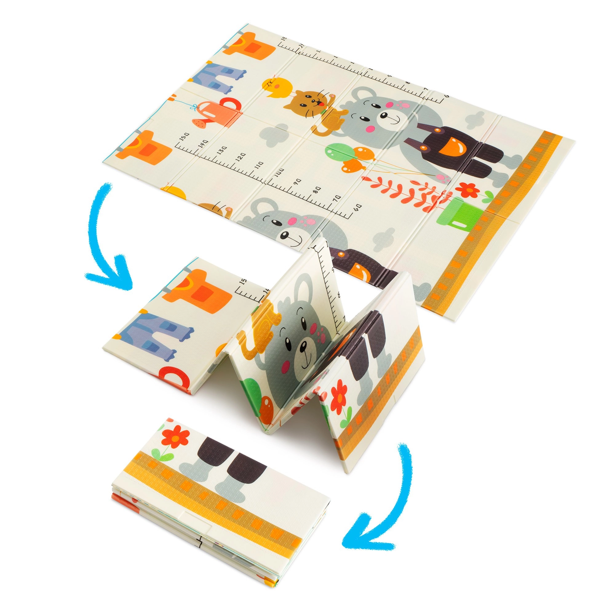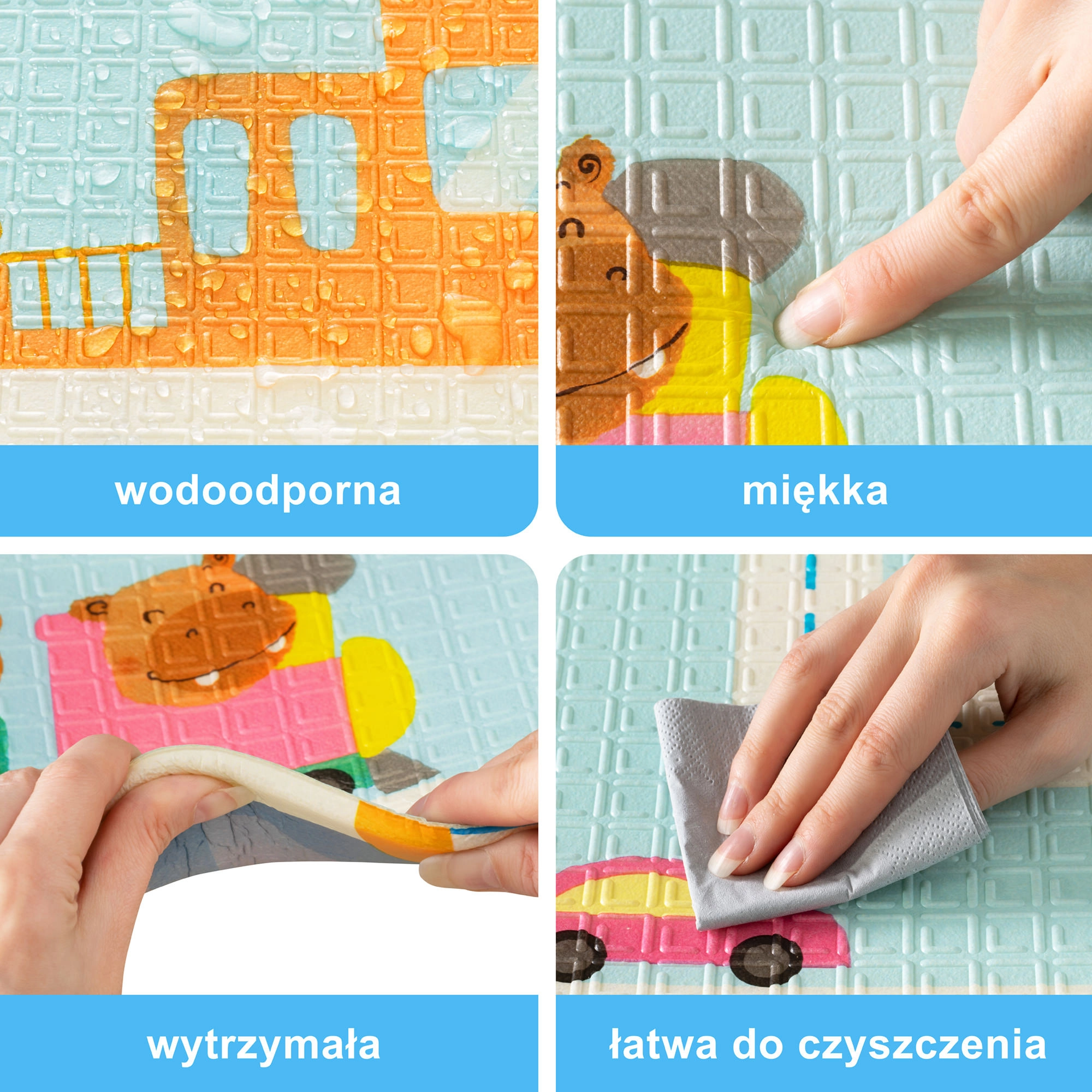 Das beidseitige Design bringt zwei lehrreiche Motive: fröhliche Tiere mit Höhenmessskala zur Beobachtung des Wachstums sowie bunte Straßen mit Gebäuden und Fahrzeugen zur Förderung der Fantasie. Die Matte lässt sich in wenigen Sekunden zusammenfalten, leicht verstauen und dank der mitgelieferten Reißverschlusstasche überallhin mitnehmen – ins Wohnzimmer, Kinderzimmer, auf den Balkon, in den Garten oder auf Reisen.