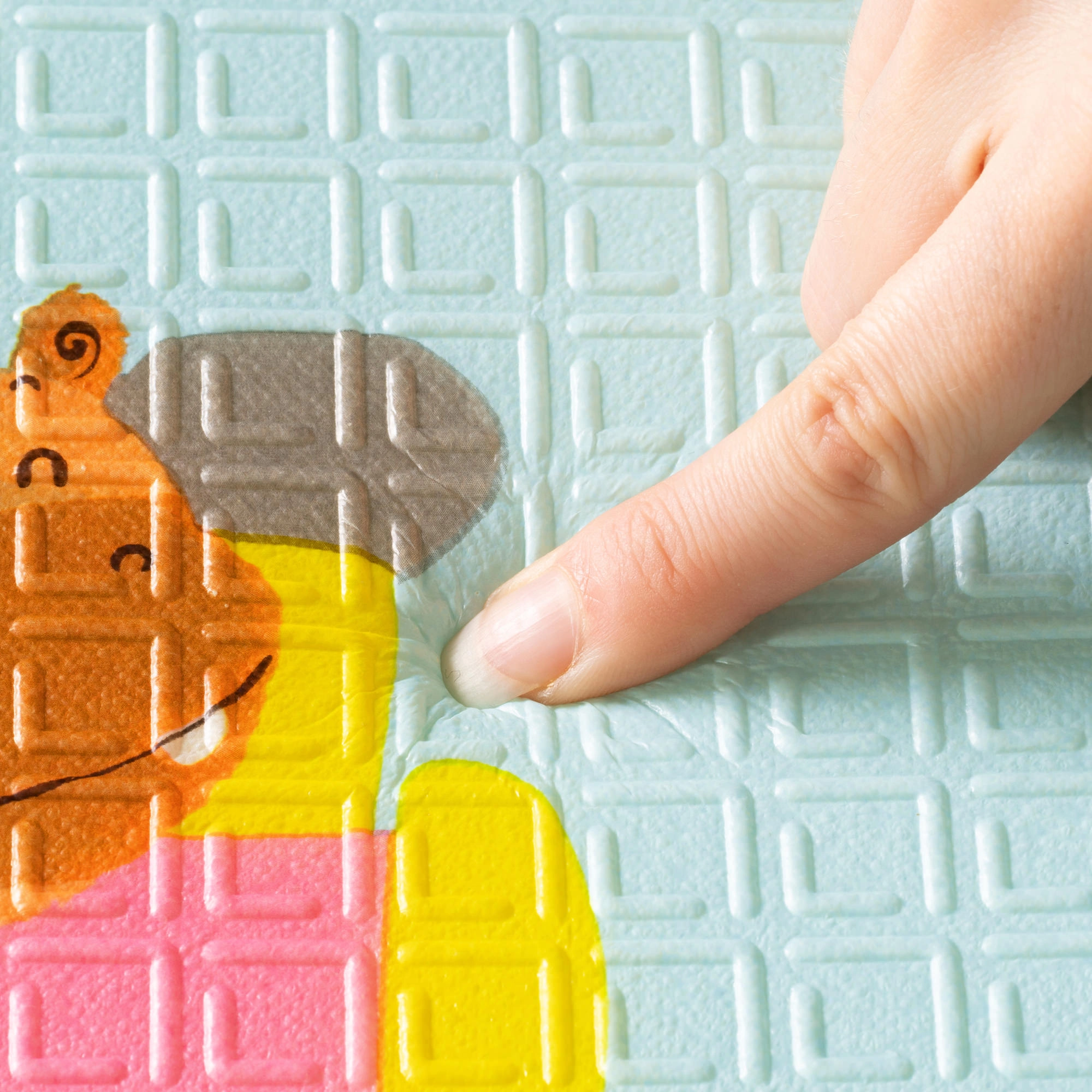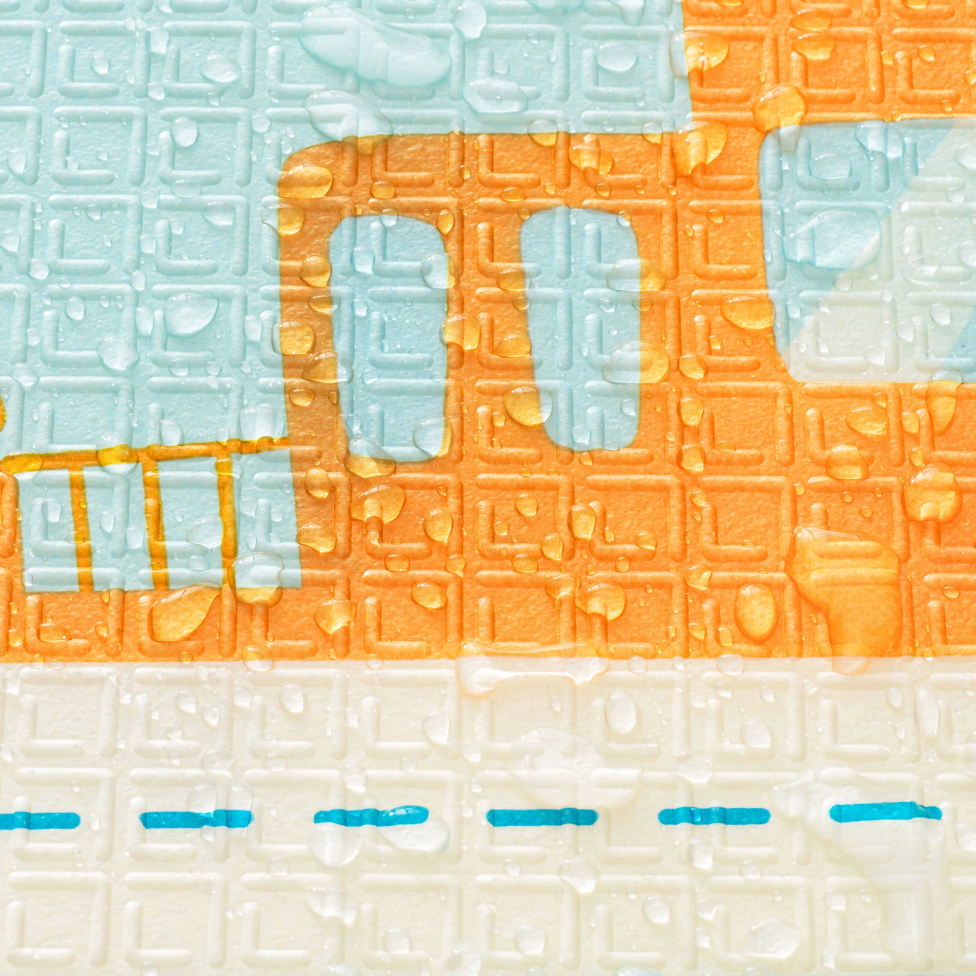Der starke, elastische und ungiftige XPE-Schaum dämpft Stürze hervorragend, isoliert gegen Bodenkälte und ist geruchsneutral. Die Oberfläche ist wasserfest und leicht zu reinigen.
