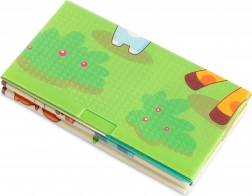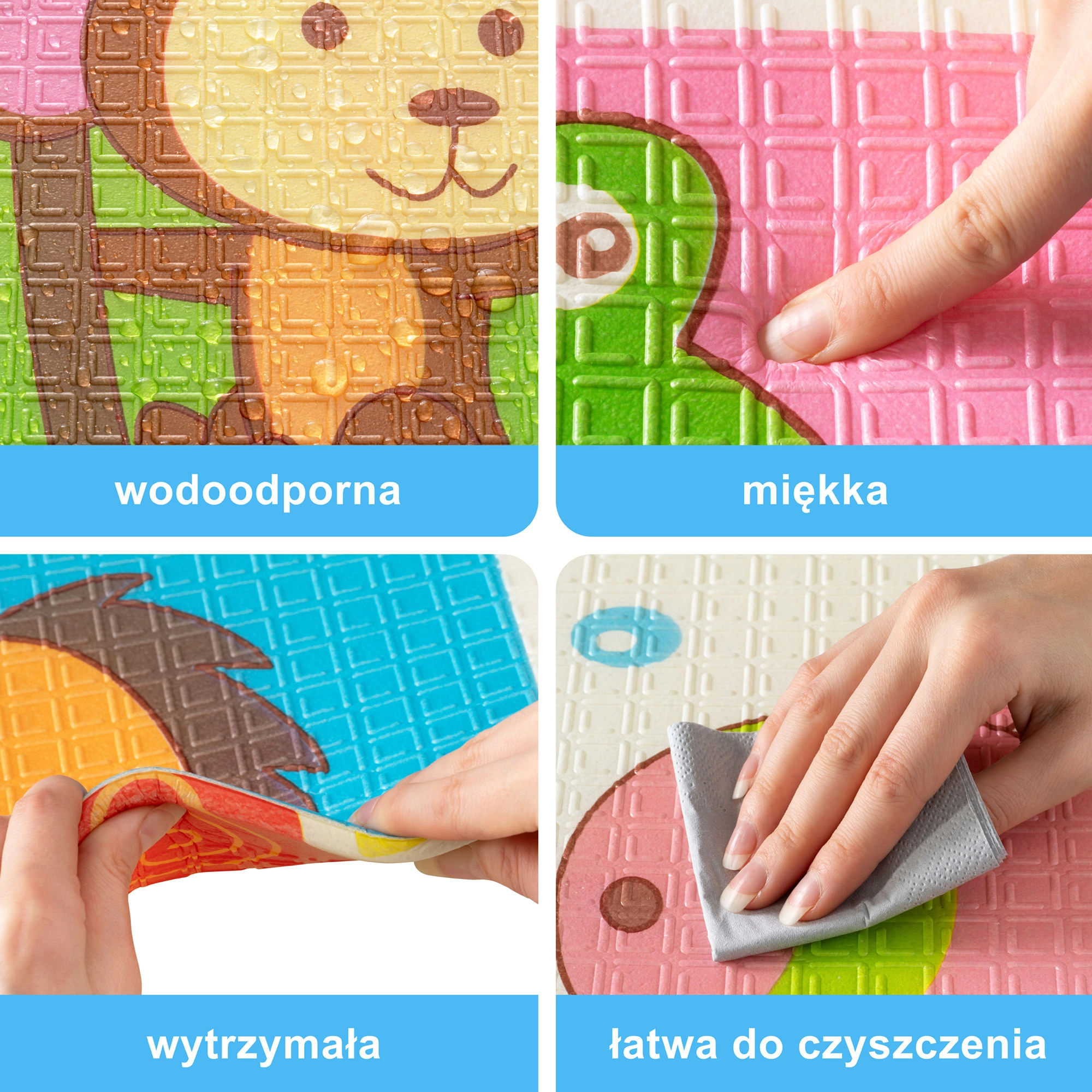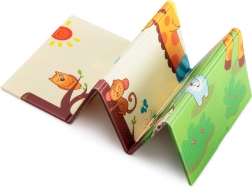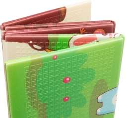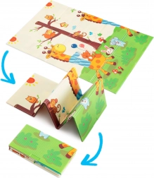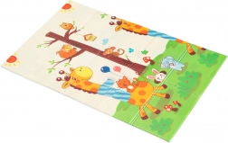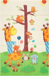 Der XPE-Premiumschaum ist geruchslos, ungiftig und abriebfest. Dank seiner Stärke von 0,8 cm dämpft er Stöße sehr gut und sorgt für Isolation gegen kalte Böden. Beide Seiten sind mit attraktiven Drucken versehen – eine mit niedlichen Giraffen, die andere mit Tieren auf farbigem Hintergrund – und fördern so die visuelle Entwicklung von Kindern.