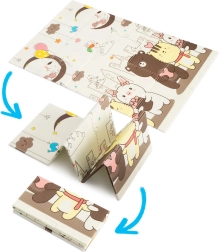 Die Matte ist faltbar in kompakte Segmente – in wenigen Sekunden aus- und wieder zusammengelegt. Die wasserabweisende und leicht abwischbare Oberfläche lässt sich mit einem feuchten Tuch reinigen und ist damit ideal für Allergiker: sie bindet weder Staub noch Milben. Im Lieferumfang ist eine verschließbare Tasche mit Henkeln enthalten – perfekt für Zuhause, Garten, Picknick und unterwegs.