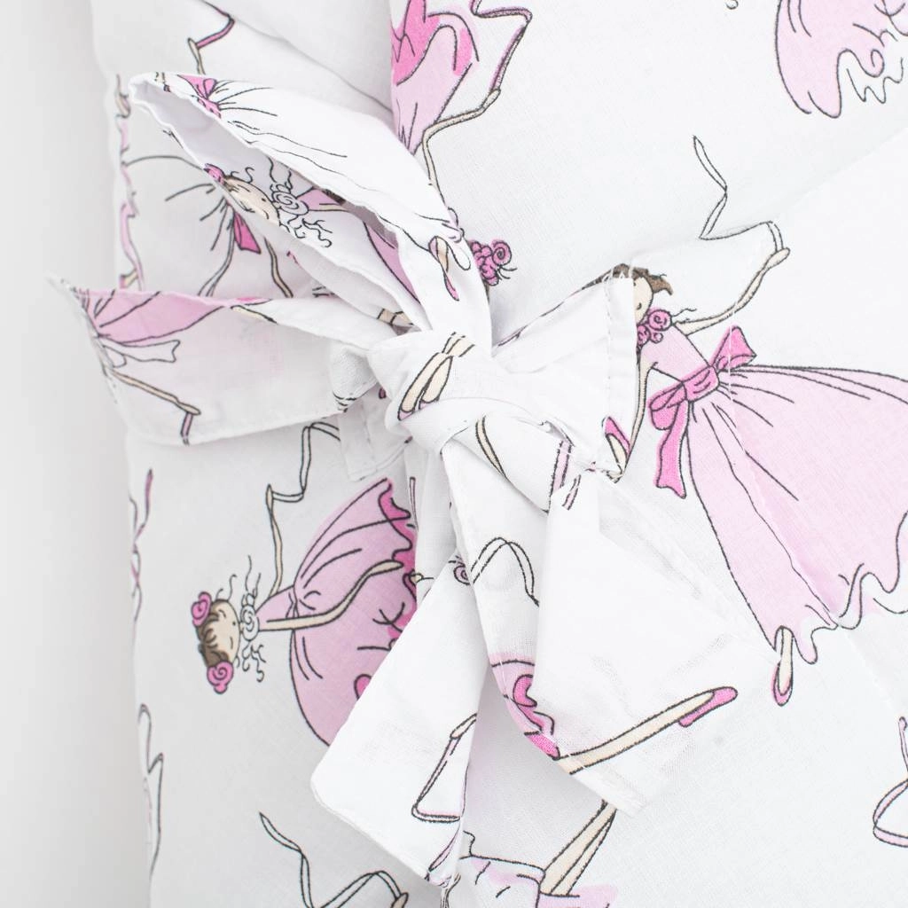 Sicherheit steht an erster Stelle: ohne Knöpfe und Kleinteile, mit einfachem und festem Klettverschluss. Der neutrale, beruhigende Ballerina-Print passt wunderbar zur Erstausstattung für Mädchen. Die Wickeldecke ist pflegeleicht und farbbeständig.