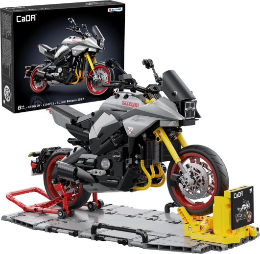 Bauen Sie das ikonische Motorrad SUZUKI Katana im Maßstab 1:6 aus 1104 Teilen. Das Modell der Marke CaDA bietet funktionsfähige Lenkung, bewegliche Kolben im transparenten Motor, arbeitende Kette, Dreigang-Getriebe, funktionierende Federung und Gummireifen. Ein großartiges Geschenk für Baumeister und Sammler – inklusive Ständer, Plattform und Infotafel zur Ausstellung.