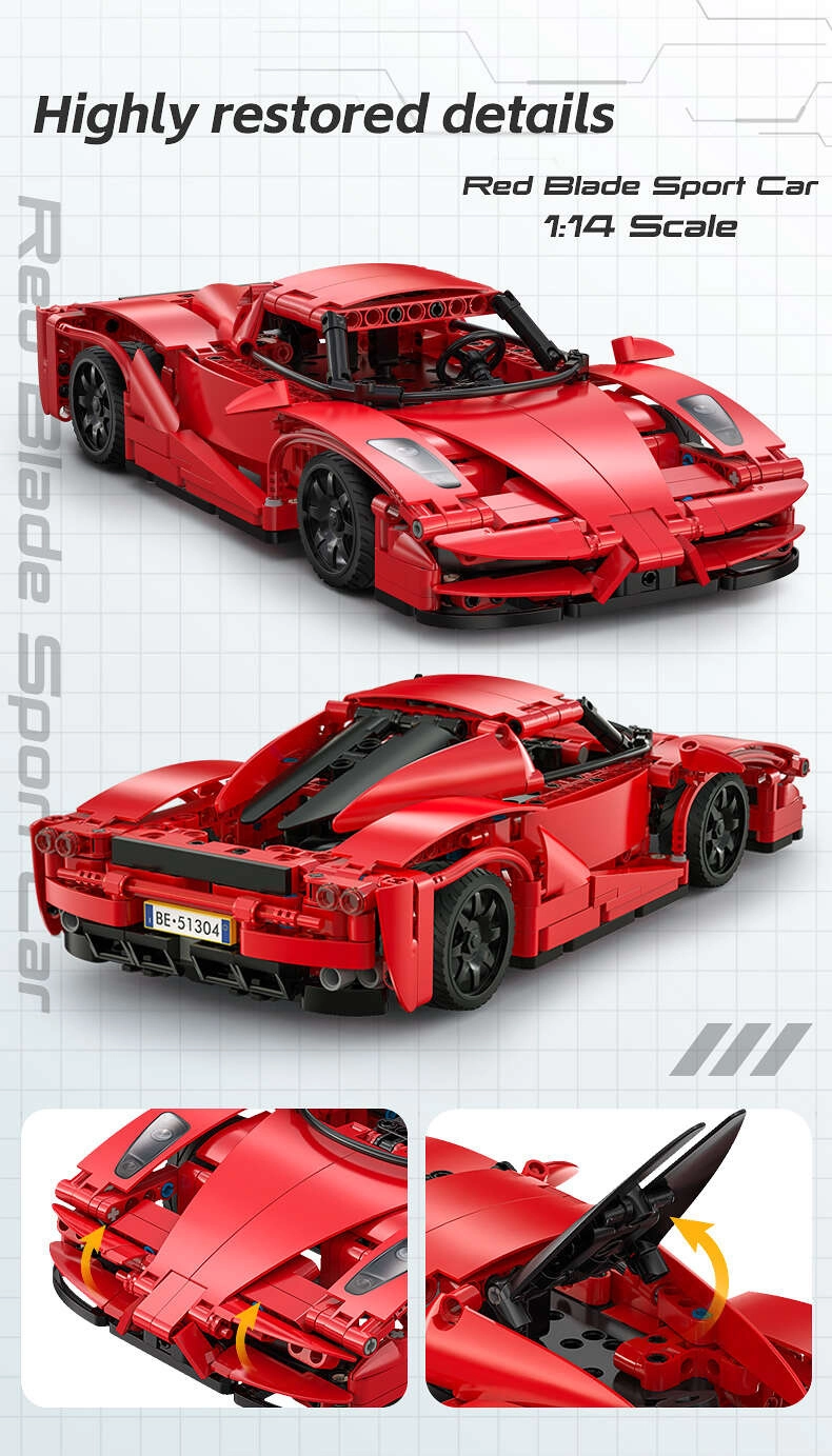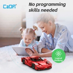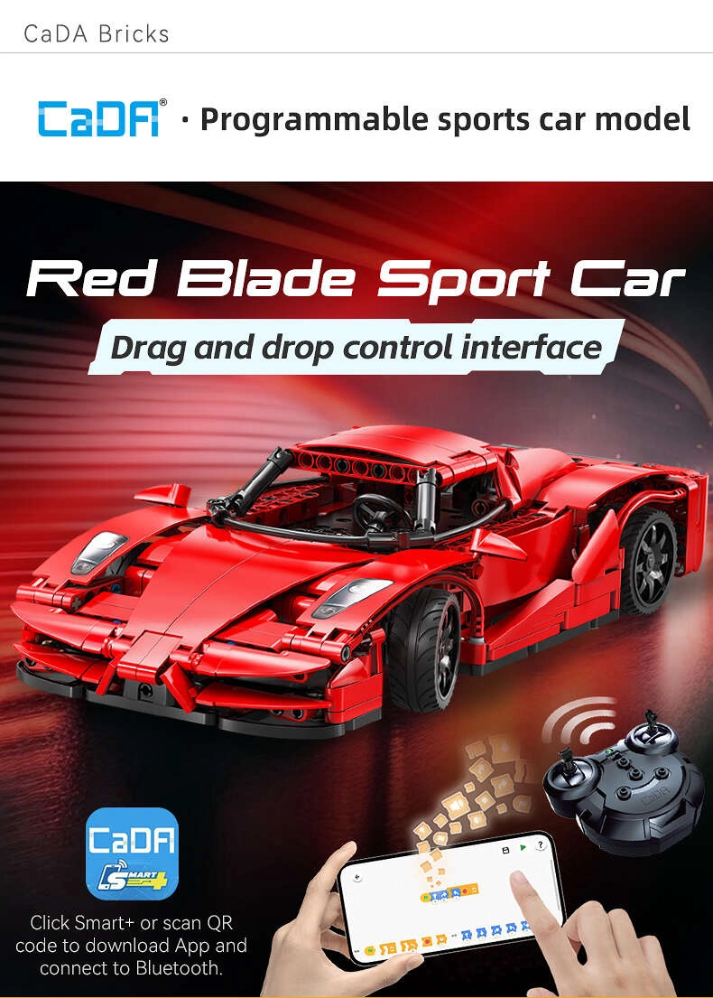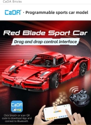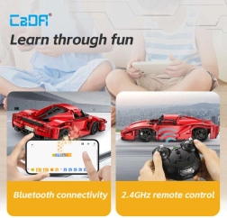 Tauchen Sie ein in die Welt technischer Bausätze mit dem CaDA Red Blade – einem detailreichen Sportwagen mit Fernsteuerung. Die rote Karosserie mit schwarzen Akzenten, realistische Proportionen und bewegliche Teile begeistern große und kleine Fans. Steuern Sie das Fahrzeug mit dem beiliegenden RC‑Controller oder per Smartphone über Bluetooth und genießen Sie eine sanfte Fahrt auf verschiedenen Untergründen.