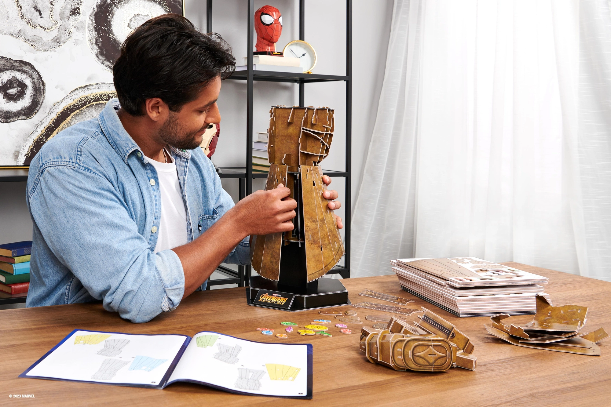 Gestalten Sie Ihr eigenes Sammlerstück: Das 3D-Modell des Infinity Gauntlet auf einem eleganten Sockel überzeugt mit reicher Struktur, „Edelsteinen“ und ikonischem Design. Die Teile werden vorsichtig aus 14 Bögen herausgetrennt und gemäß der übersichtlichen Anleitung zusammengesetzt – so entsteht ein stabiler Display-Modell, das im Regal wie auch auf dem Schreibtisch glänzt.