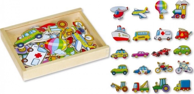 Holzmagnete mit Verkehrsmotiven bringen Spaß und Lernen in einem. Das Set enthält 20 Magnete in einer praktischen Box – ideal für Kinder.