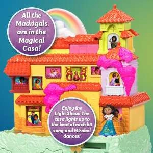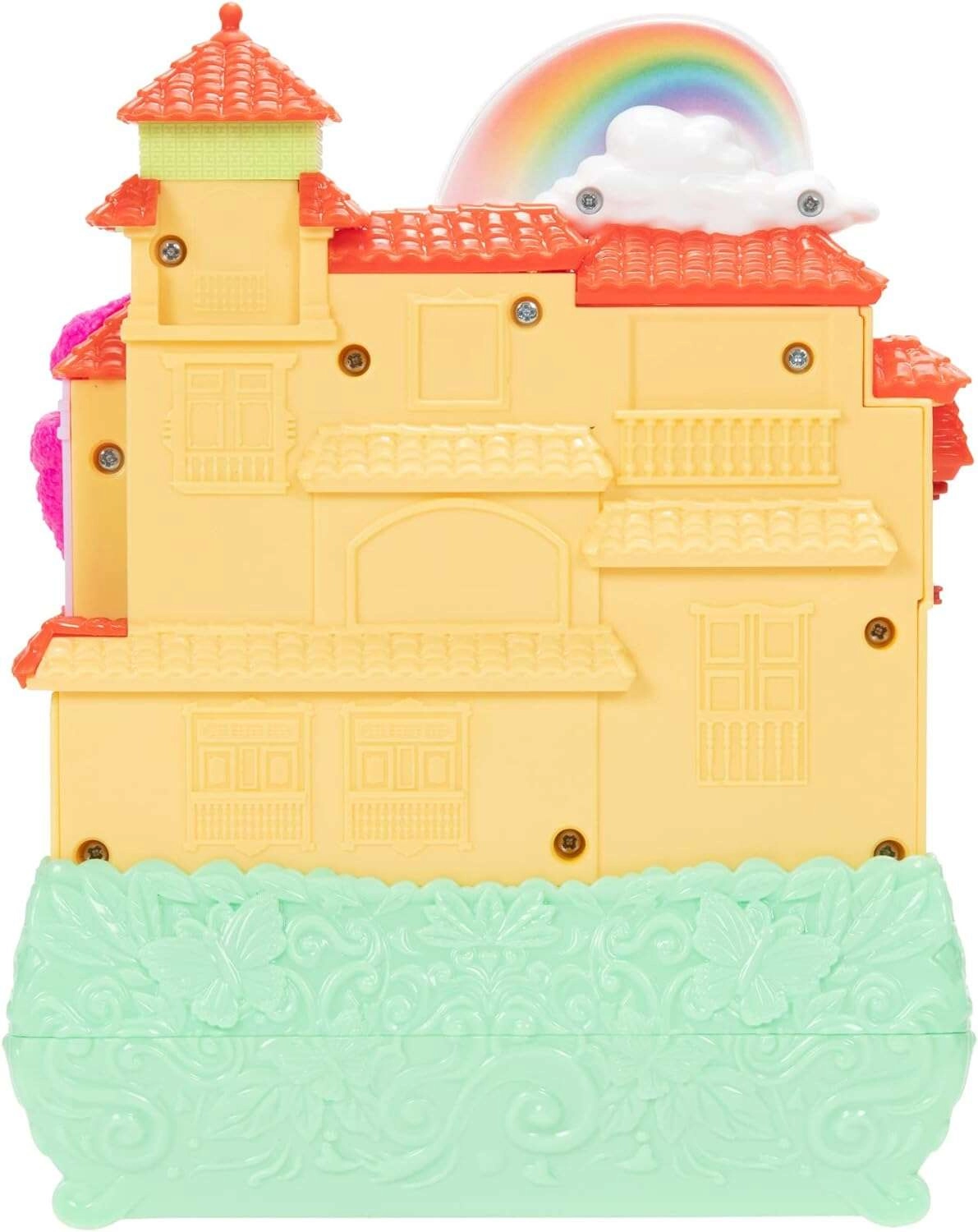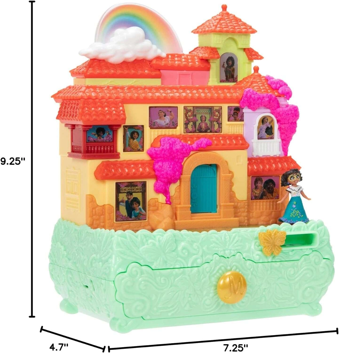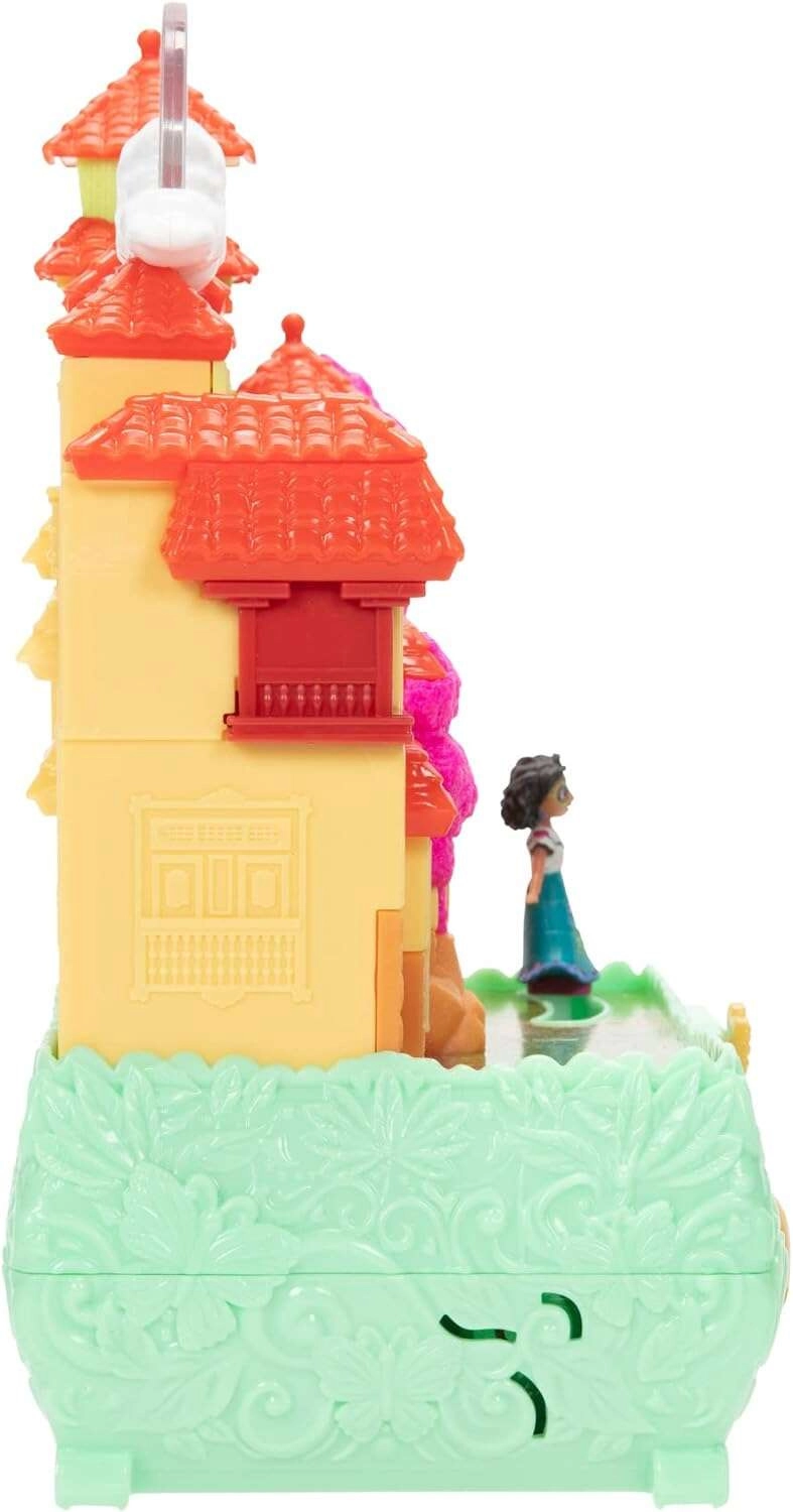 Leuchtende Fenster, öffnende Türen und eine tanzende Mirabel erwecken eine Szene aus ENCANTO zum Leben. Einfach den Schmetterling schieben und das Haus spielt beliebte Melodien.