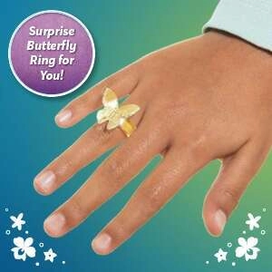 Bewahren Sie Armbänder, Ringe und kleine Geheimnisse in der praktischen Schublade im Sockel auf. Im Set enthalten ist auch ein zauberhafter Schmetterlingsring.