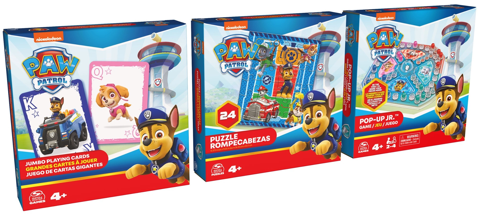 Das 3-in-1-Set mit PAW PATROL-Motiv bringt stundenlangen Spaß für kleine Fans der beliebten Welpen. Kinder können das farbenfrohe Puzzle (24 Teile) legen, im Pop-up Spiel mit Würfel unter der transparenten Kuppel um die Wette ziehen und mit Jumbo-Karten mit großen Helden-Illustrationen Gedächtnis und Reaktion trainieren.