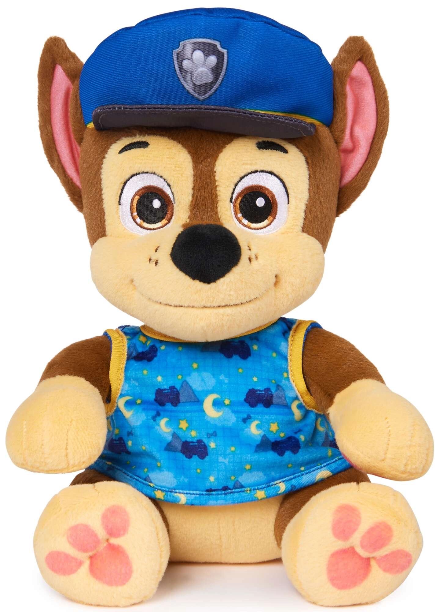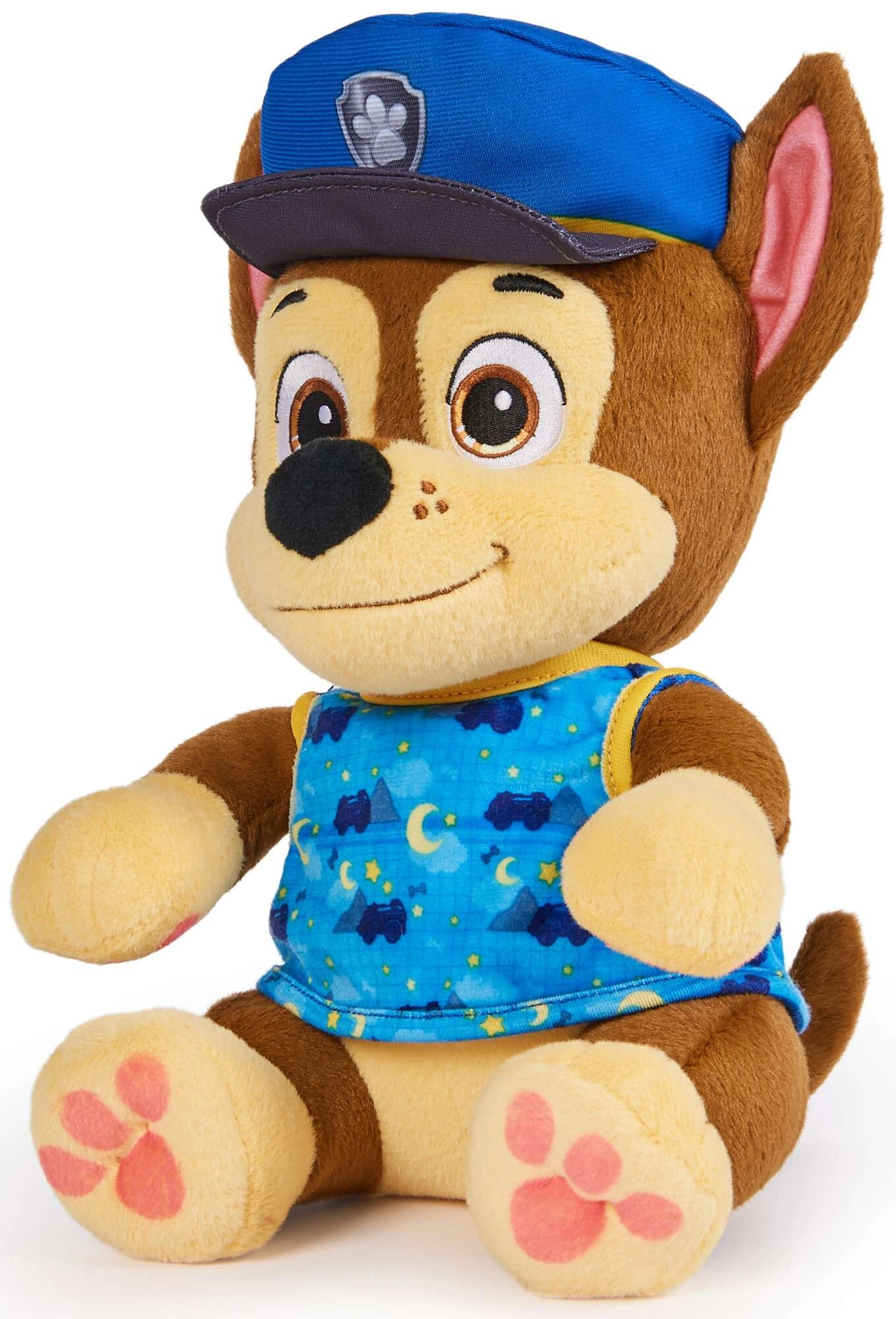 Der Plüschhund Chase erfreut alle kleinen Fans der Serie PAW PATROL. Er besteht aus feinem, weichem Plüsch, der zum Kuscheln einlädt, und eignet sich dank der kompakten Größe perfekt fürs Bettchen und für unterwegs. Gekleidet in einem stylischen Schlaf-Outfit mit Wendeoption für einen spielerischen Lookwechsel.