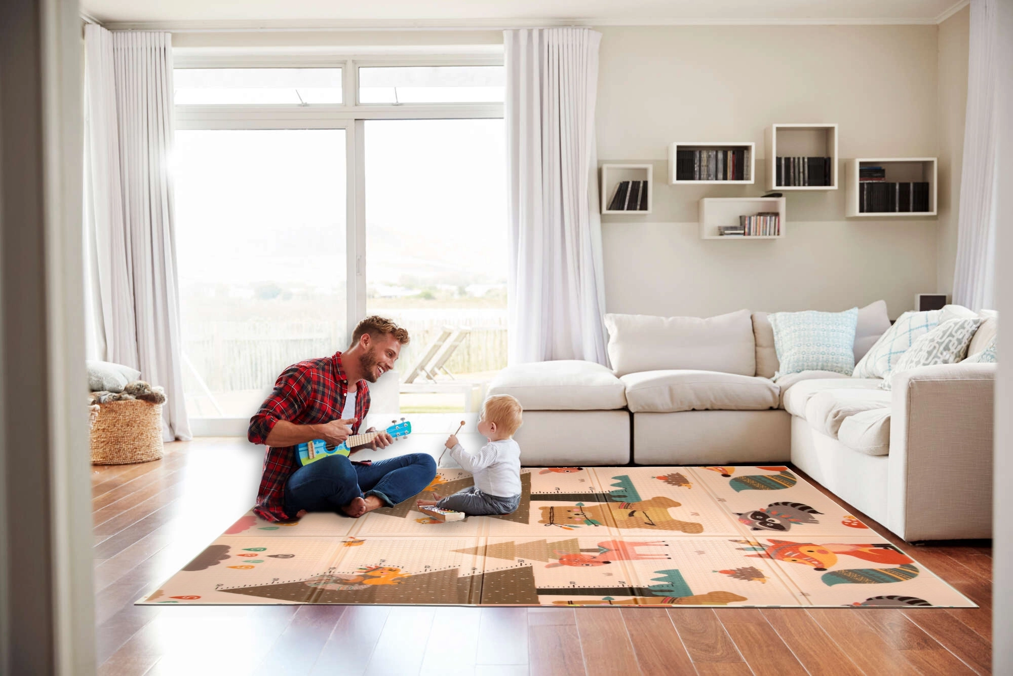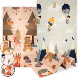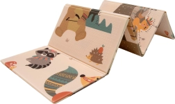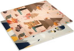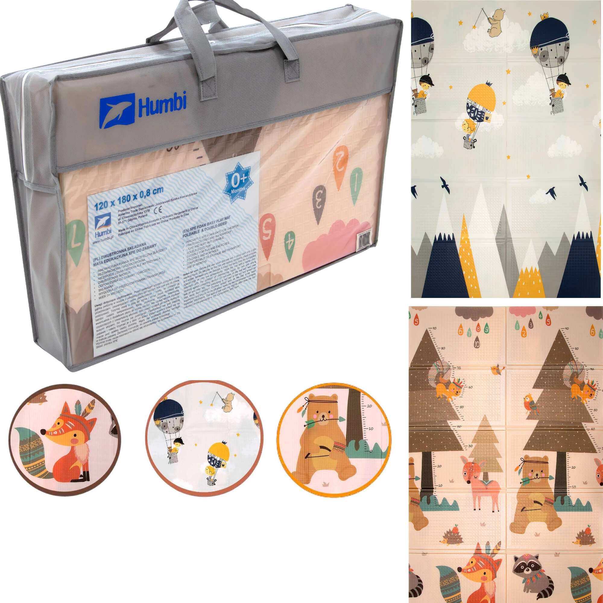 Die HUMBI-Matte aus hochwertigem XPE-Schaum bietet ausgezeichnete Stoßdämpfung, thermische Isolierung gegen kalte Böden und eine rutschfeste, sanft geprägte Oberfläche für sicheres Krabbeln und die ersten Schritte. Sie ist zweiseitig – auf einer Seite niedliche Waldtiere, auf der anderen Berg- und Abenteuer-Motive – so lässt sich der Look leicht an Interieur und Stimmung des Kindes anpassen.