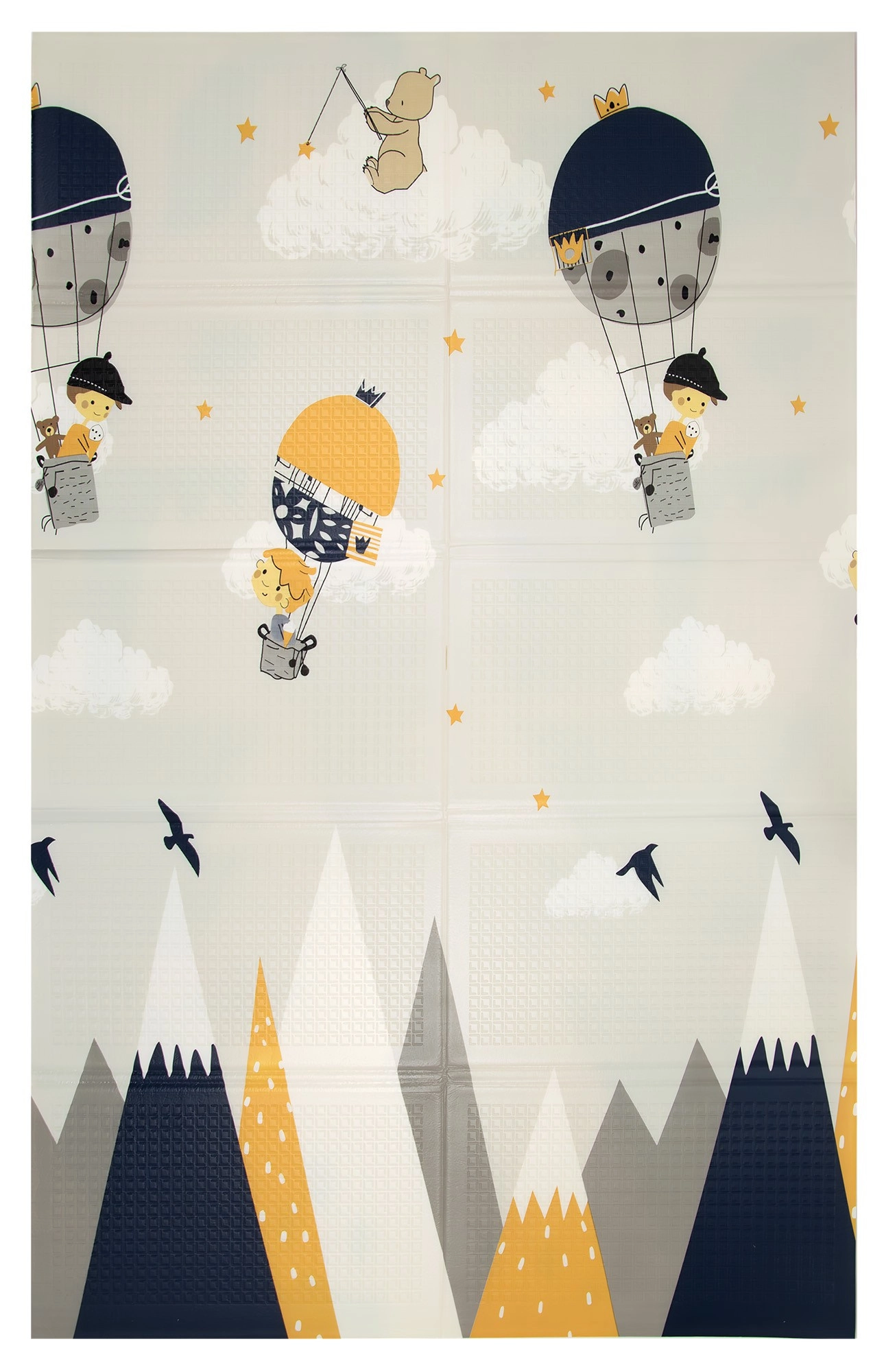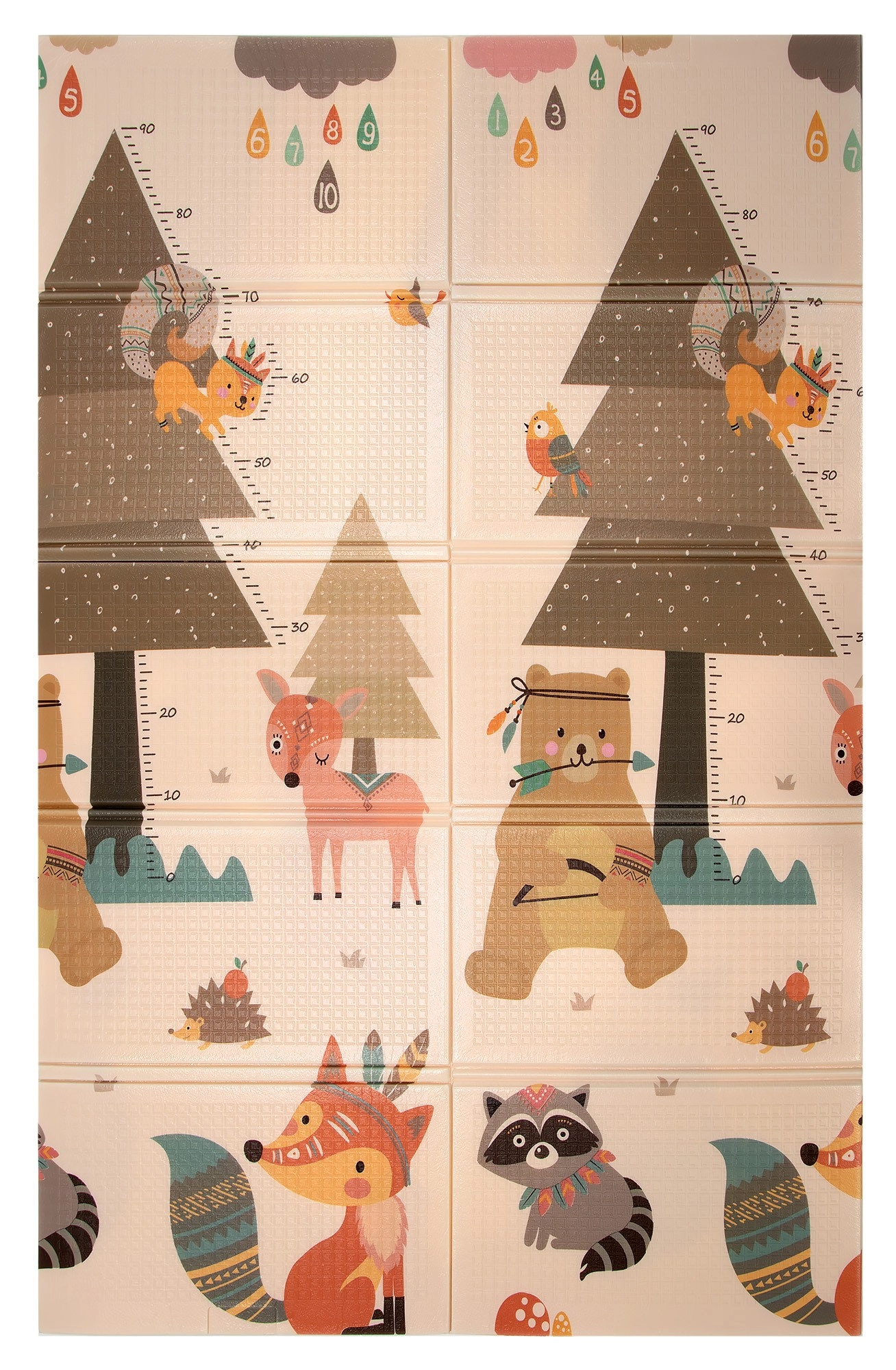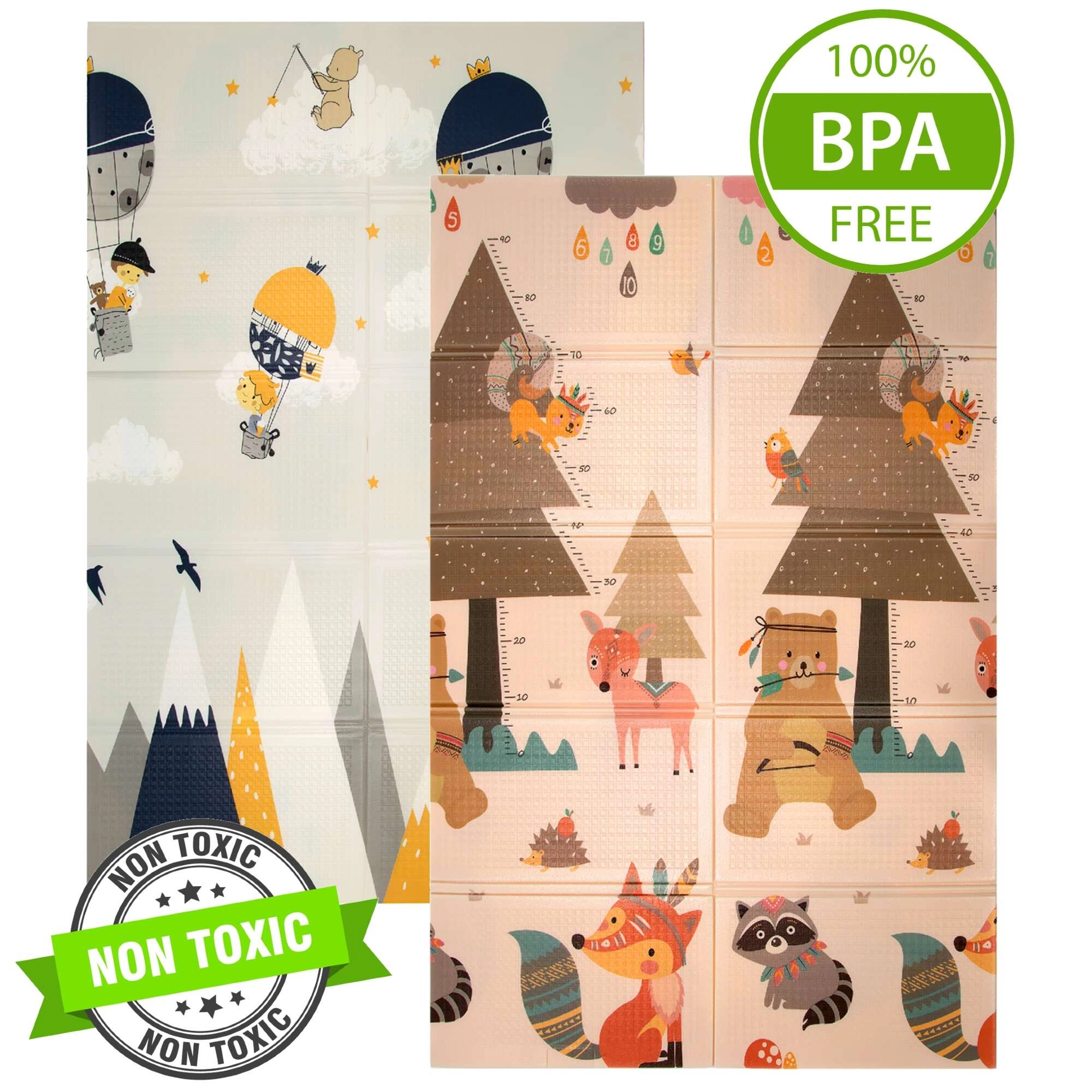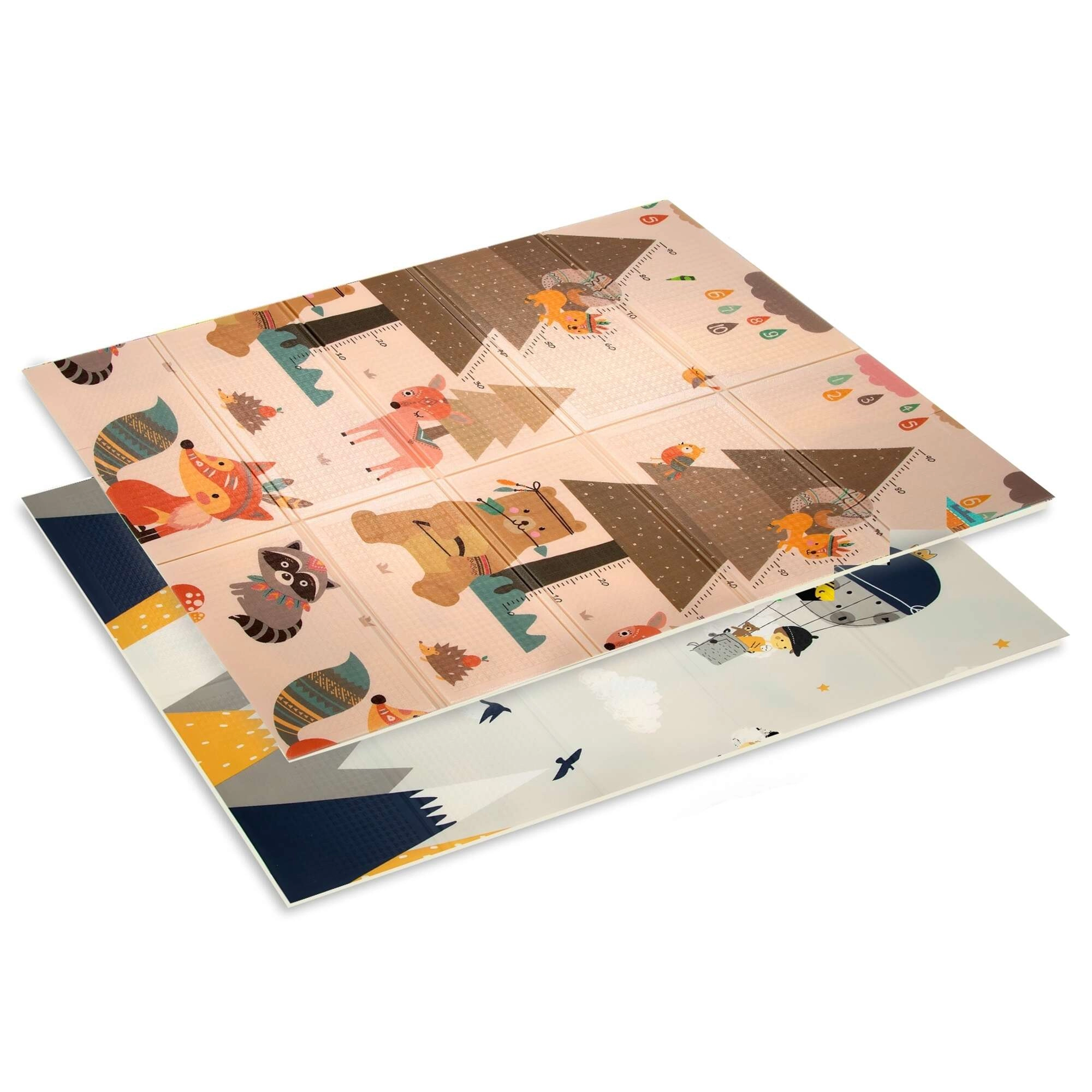 Zwei Seiten mit fröhlichen Motiven fördern die sensorische Entwicklung und das Spiel. Die leicht geprägte, rutschfeste Oberfläche unterstützt sicheres Krabbeln und die ersten Schritte.