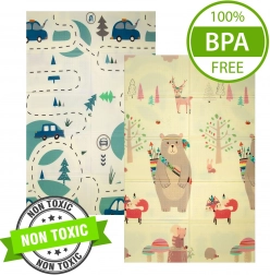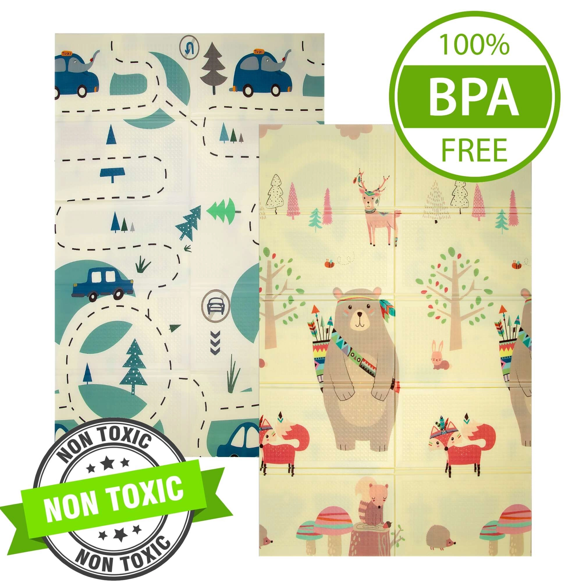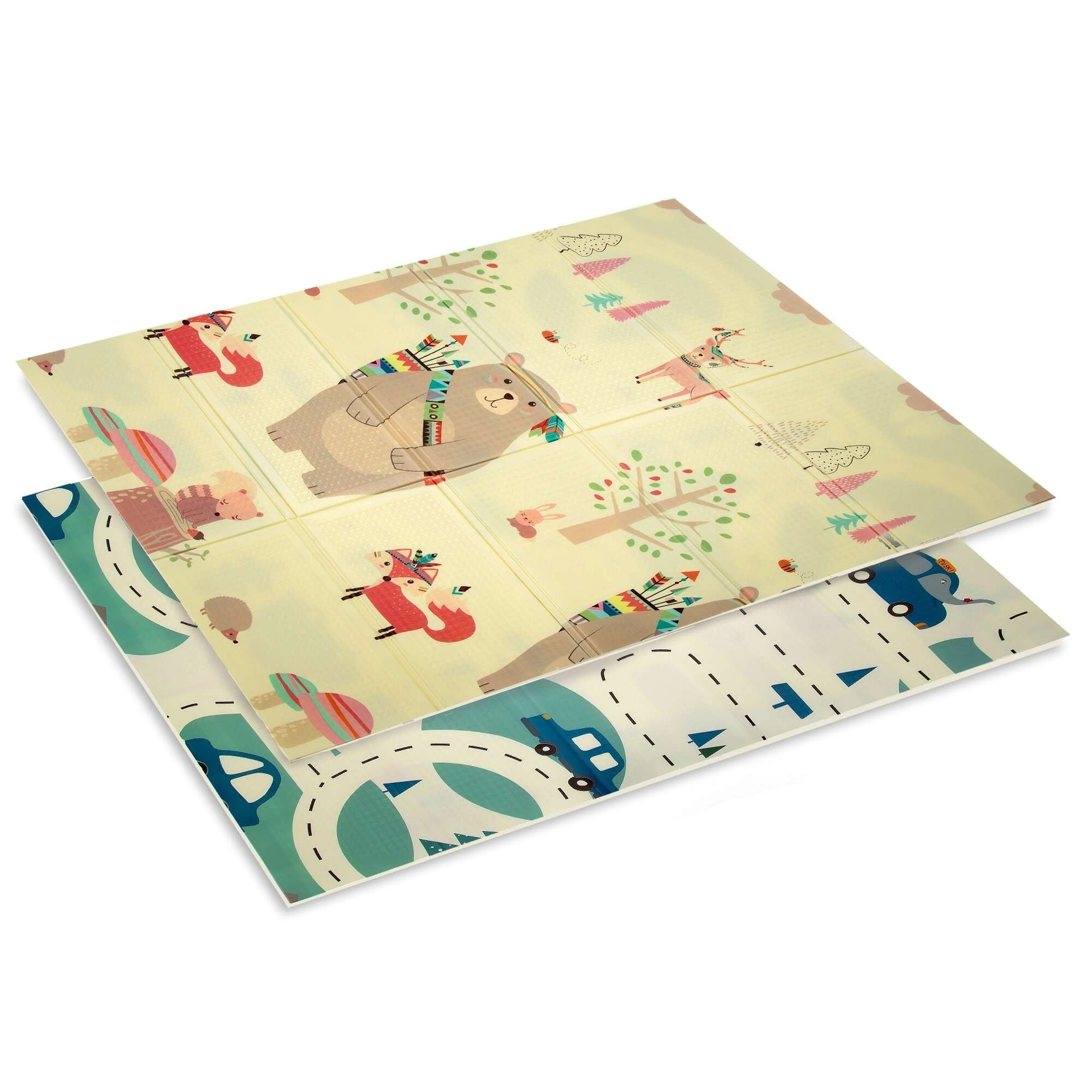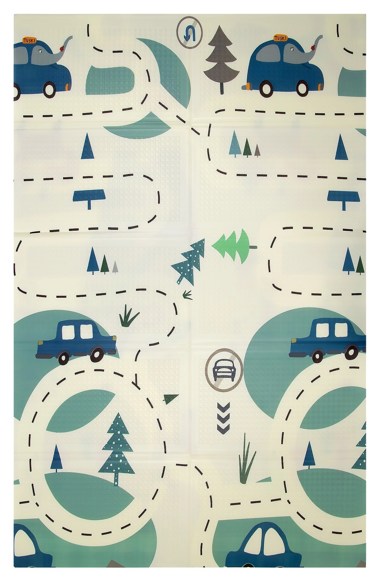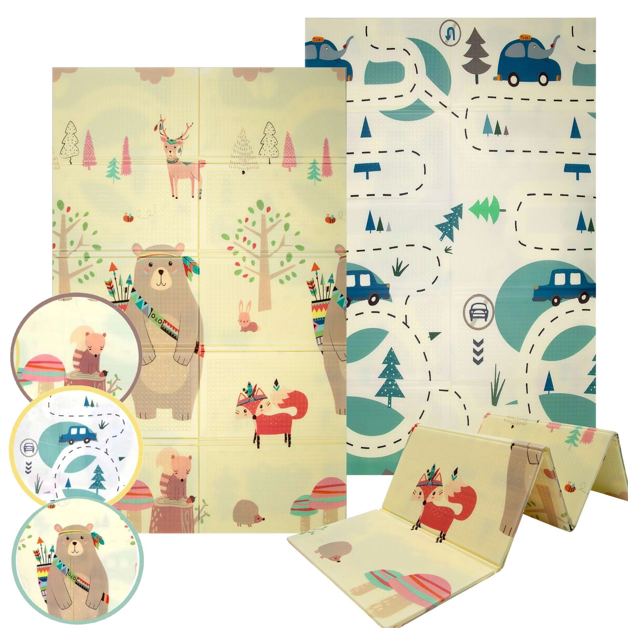 Zweilagige faltbare XPE-Schaumspielmatte 120 × 180 cm mit Tier- und Straßenmotiv HUMBI