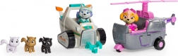 Dieses detailreiche Rettungsset bringt die beliebten Heldinnen der Serie PAW Patrol ins Kinderzimmer. Skyes Hubschrauber in Metallic-Grau mit pink‑lila Details verfügt über einen drehbaren Rotor und Rollen für das Fahren auf dem Boden; die Skye-Figur lässt sich leicht im Cockpit platzieren. Everest startet mit ihrem Schneescooter mit beweglichem Greifer in die Action – Rettungseinsätze in den Bergen sind damit ein Kinderspiel.