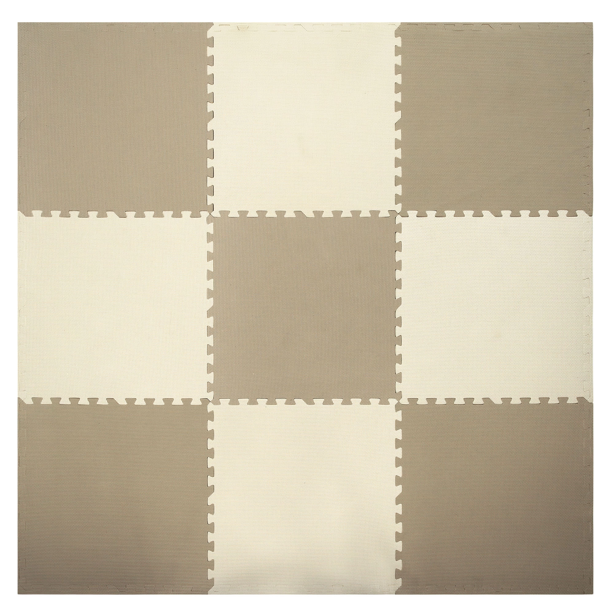 Neun große Platten mit 18 Randteilen werden wie ein Puzzle zu einer sauberen Fläche von 180 × 180 cm zusammengefügt. Die Sets lassen sich leicht erweitern und an den Raum anpassen.