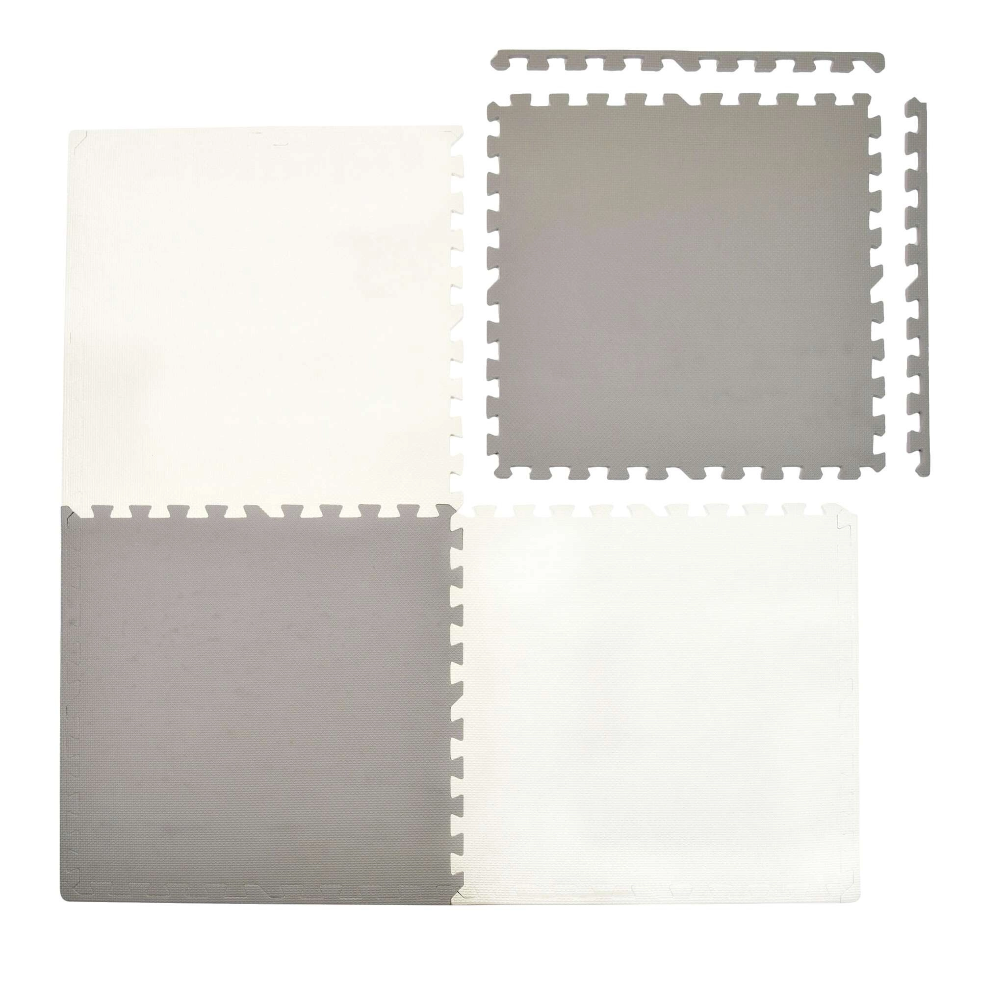 Die elegante HUMBI-Schaumstoffmatte im neutralen grau-weißen Schachbrettmuster passt ins Kinderzimmer wie auch ins Wohnzimmer. Sie bietet Komfort und Sicherheit beim Spielen, ist frei von Phthalaten, Formamid, BPA und PVC und erfüllt EN 71 sowie REACH. Dank des Puzzlesystems können Form und Größe individuell angepasst werden, Randleisten sorgen für einen sauberen Abschluss.
