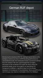 Öffnende Türen, Motorhaube und Kofferraum, funktionierende Lenkung und arbeitende Federung verleihen dem RUF GT einen realistischen Charakter und ein großartiges Erlebnis beim Spielen und Ausstellen.