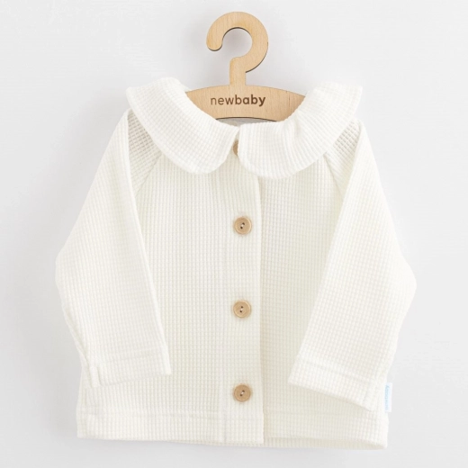 Das Babyjäckchen New Baby Laura vereint Komfort, Funktionalität und zarte Eleganz. Dank hochwertigem Baumwollstrick ist es angenehm weich, atmungsaktiv und sowohl für den täglichen Gebrauch als auch für besondere Anlässe geeignet. Der stilvolle Kragen und die Holzknöpfe verleihen der Jacke einen zeitlosen Look, der in der Erstausstattung leicht eine klassische Strickjacke ersetzt.