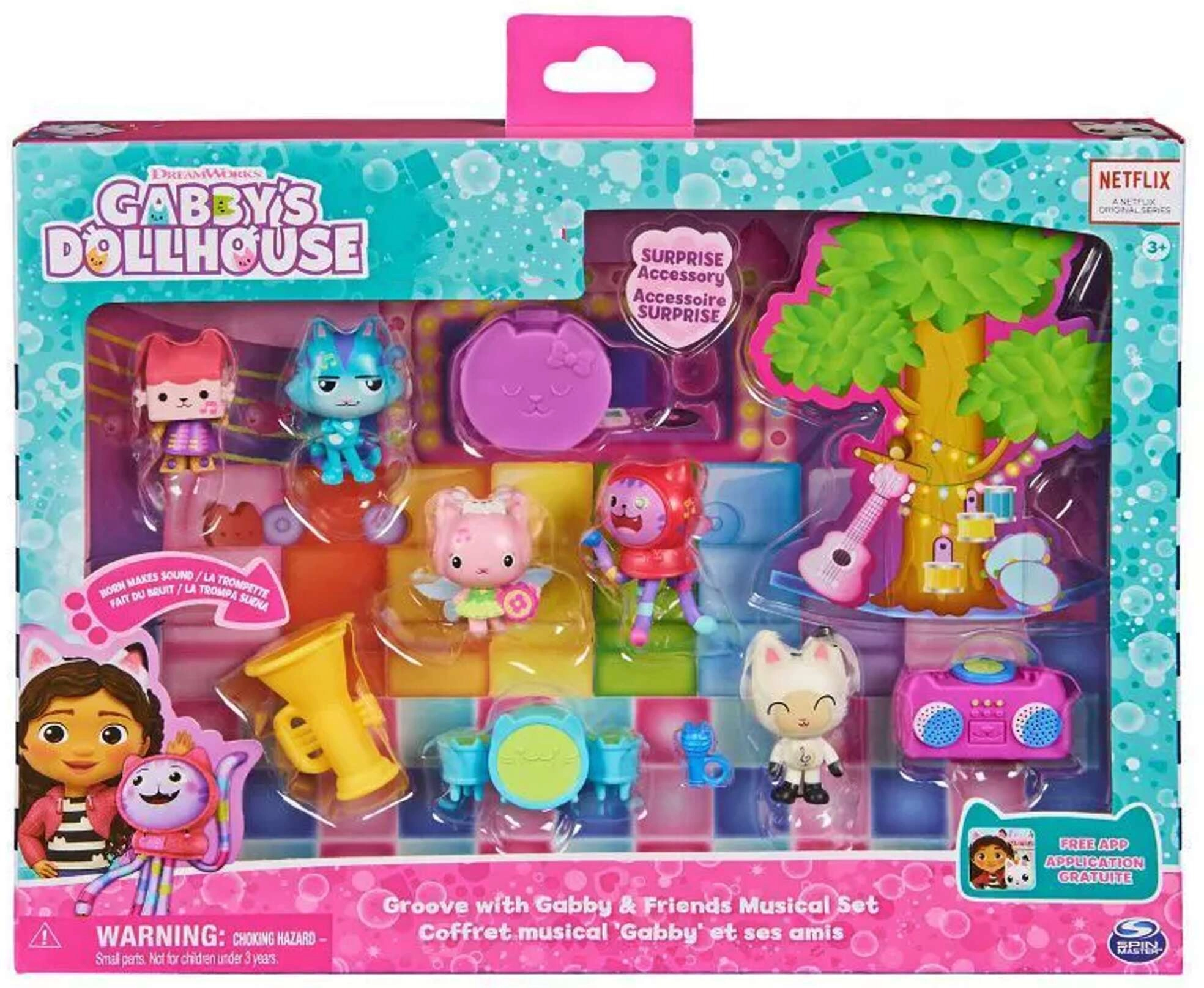 Das GABBY'S DOLLHOUSE Musik-Set bringt beliebte Figuren und Musikutensilien, inspiriert von der Serie Gabby's Katzenhaus. Kinder können mit der Band auftreten, eigene Songs komponieren und Szenen aus der Serie nachspielen – und das alles mit sicheren und bunten Accessoires, die perfekt in Kinderhände passen.