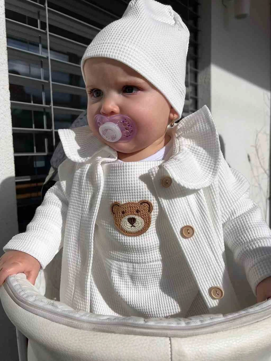 Leichte und atmungsaktive Mütze aus hochwertiger Baumwolle, die das Babyköpfchen den ganzen Tag über angenehm warm hält. Dank des weichen Rippbündchens sitzt sie hervorragend, rutscht nicht und bietet maximalen Komfort auch bei längerem Tragen.