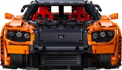 Die orange-schwarze Karosserie mit verchromten Felgen und Heckflügel sticht sofort ins Auge. Ein großartiges Modell zum Ausstellen und Fahren.