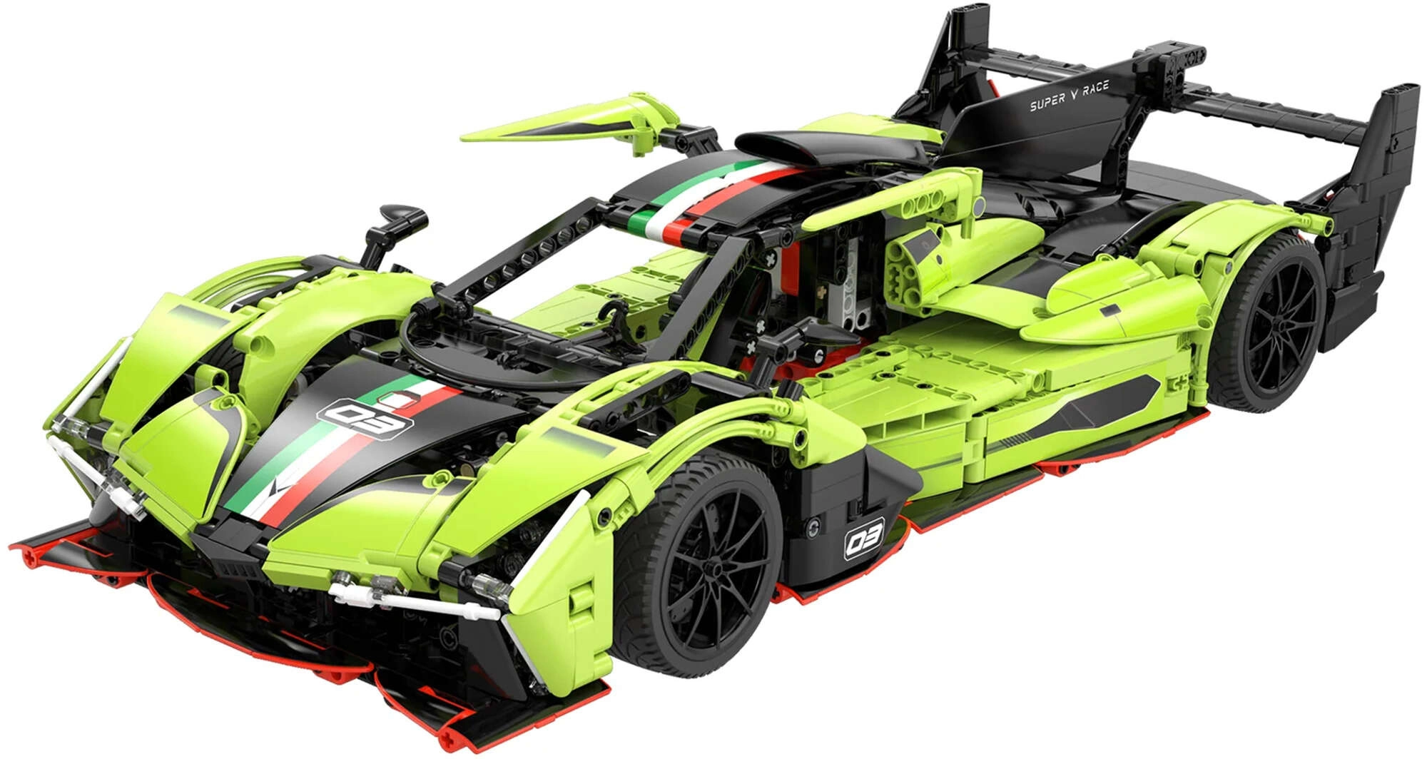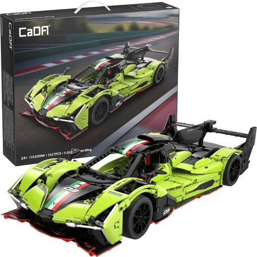 Bauen Sie sich mit dem Modell PHANTOM WING von CaDA im Maßstab 1:10 eine realistische Rennmaschine. Das Set umfasst 1817 Teile und bietet öffnende Türen, Motorhaube und Kofferraum, funktionsfähige Lenkung sowie arbeitende Federung. Die grün‑schwarze Karosserie voller Details begeistert jeden Fan technischer Bausätze; das Modell ist kompatibel mit anderen Baukästen und für eine optionale RC-Motorisierung vorbereitet (nicht enthalten).