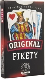 Klassische Spielkarten Pikety mit einem Set aus 32 Blättern in einer praktischen Schachtel 7 × 11 cm für leichtes Mitnehmen. Ideal für Mariáš, Prší, Sedma und weitere beliebte Kartenspiele. Hochwertiger Druck und traditionelle Bildkarten sorgen für gute Lesbarkeit und lange Lebensdauer.