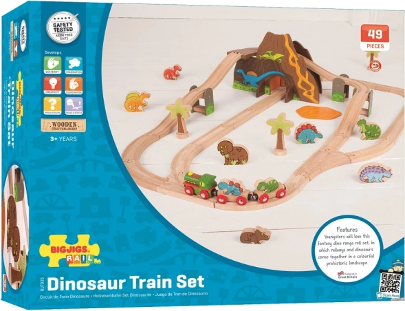 Holz-Dinosaurier-Eisenbahn BIGJIGS RAIL, 49 Teile