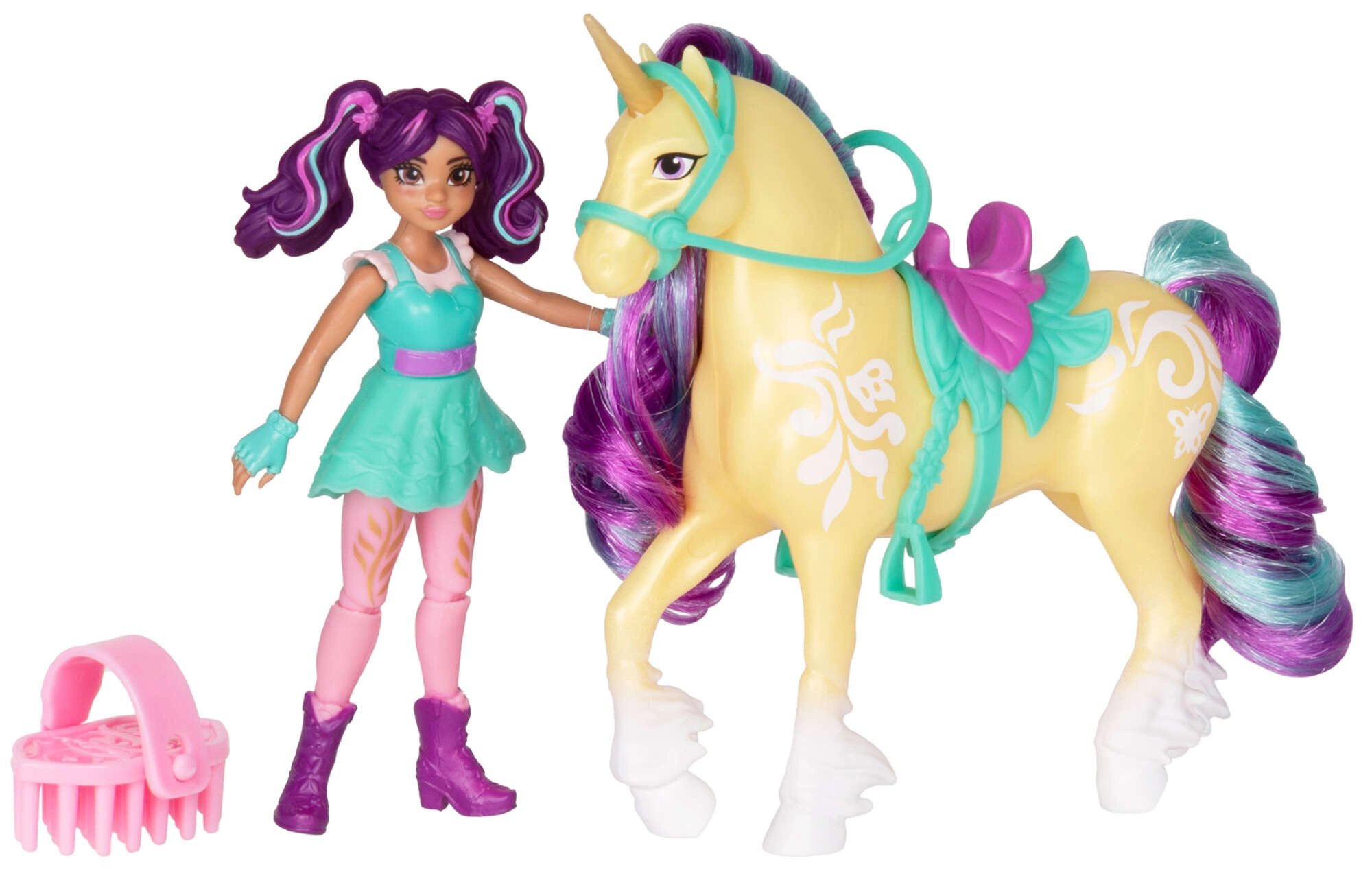 Ava hat Gelenke für ein einfaches Einstellen von Posen beim Nachspielen von Szenen aus der Welt der UNICORN ACADEMY – vom Erkunden bis zum Reiten auf dem Einhorn.