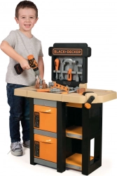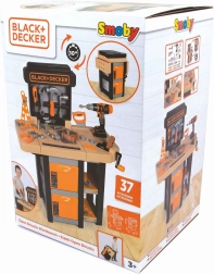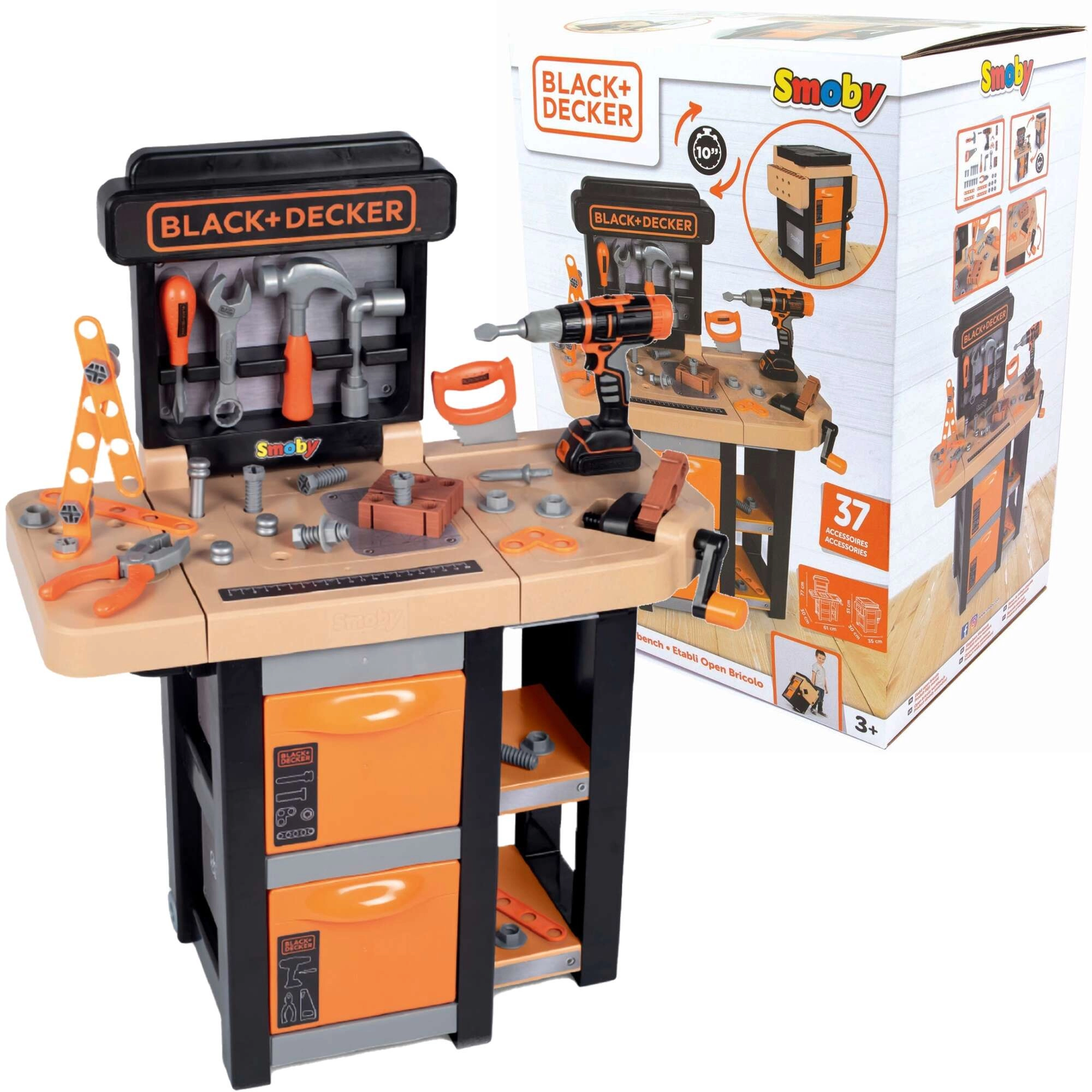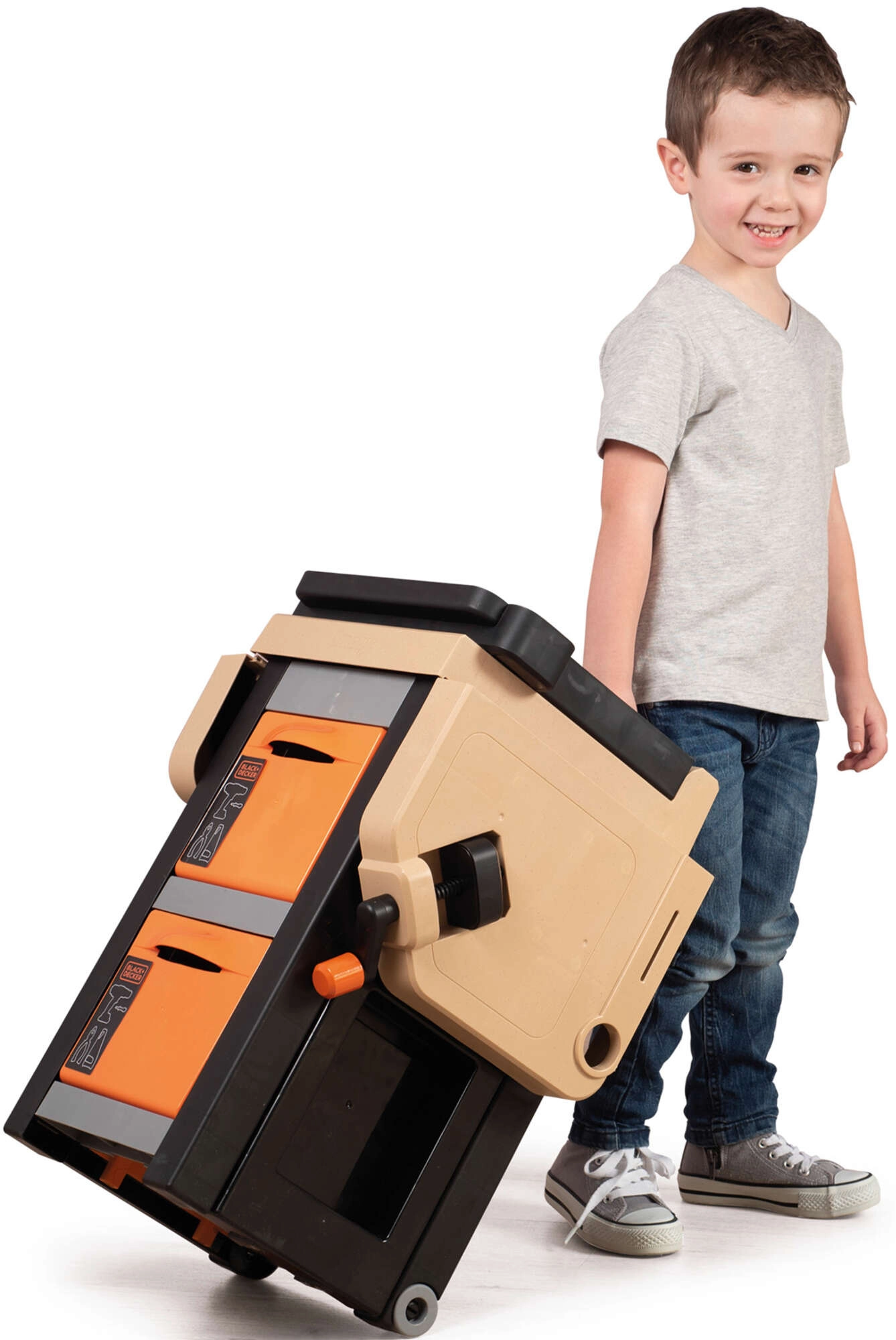 Die offene Werkbank Bricolo basiert auf der BLACK+DECKER-Lizenz, sodass Kinder mit Werkzeugen arbeiten, die wie echte aussehen. Die robuste Arbeitsfläche in Holzoptik, Ständer und Pegboard für Werkzeuge, Schubladen und Ablagen halten alle Teile übersichtlich in Reichweite. Die Werkbank ist mit Fokus auf Qualität und Langlebigkeit gefertigt und hält dem täglichen Spiel stand.